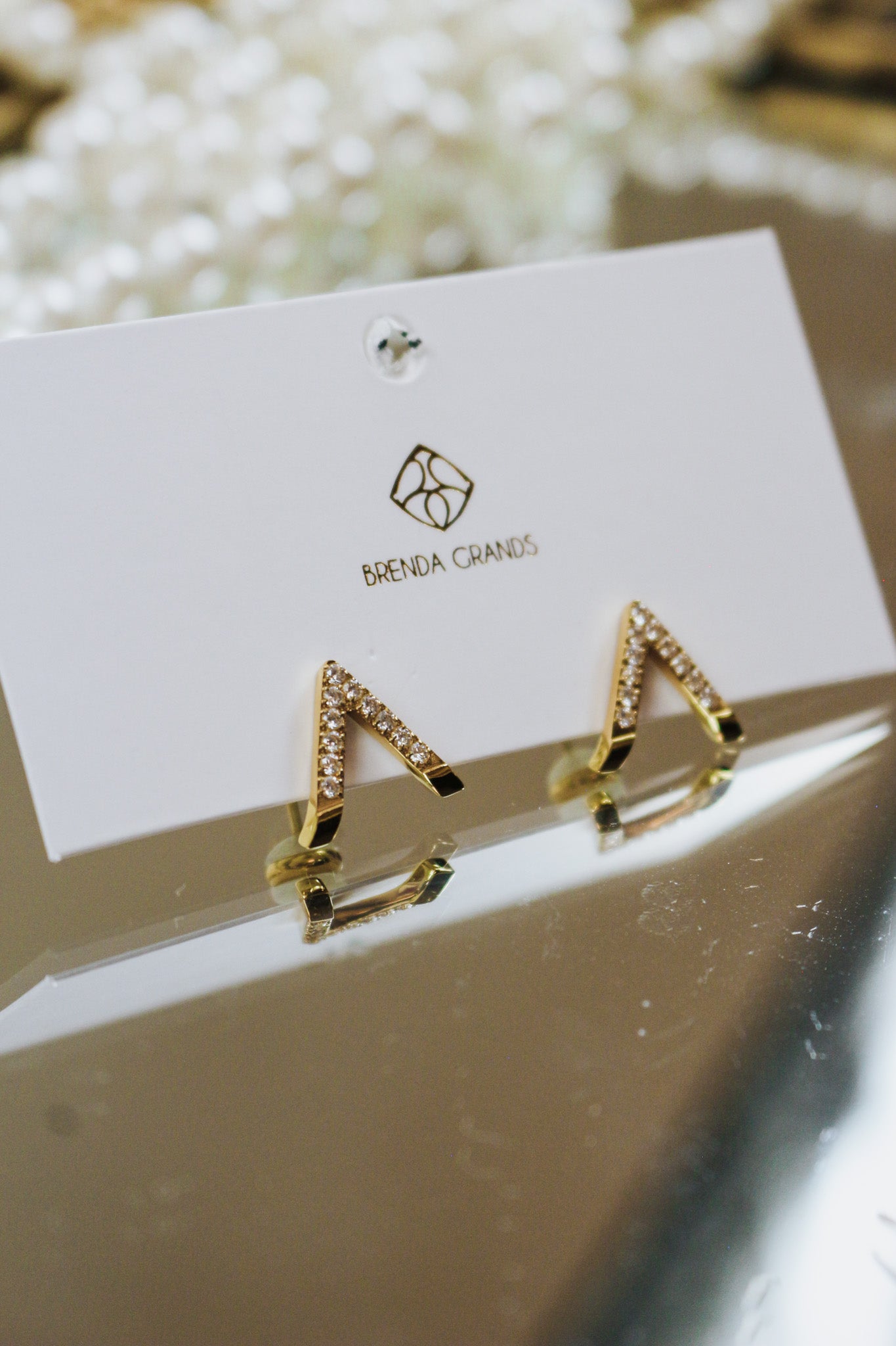 Designer Note: V for victory! These diamond V studs are your new everyday sparkle. Simple yet stunning, they add just the right amount of bling. Made from 18K gold-plated stainless steel and featuring stones that gleam like real diamonds, waterproof and fabulous.
