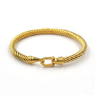 The Gold and Silver Hinge Bangle Bracelet features a sleek, twisted rope design with a secure hinge closure for effortless style and easy wear. Made with waterproof stainless steel, it’s tarnish-free and perfect for stacking or wearing solo. A timeless piece that elevates any look from day to night.