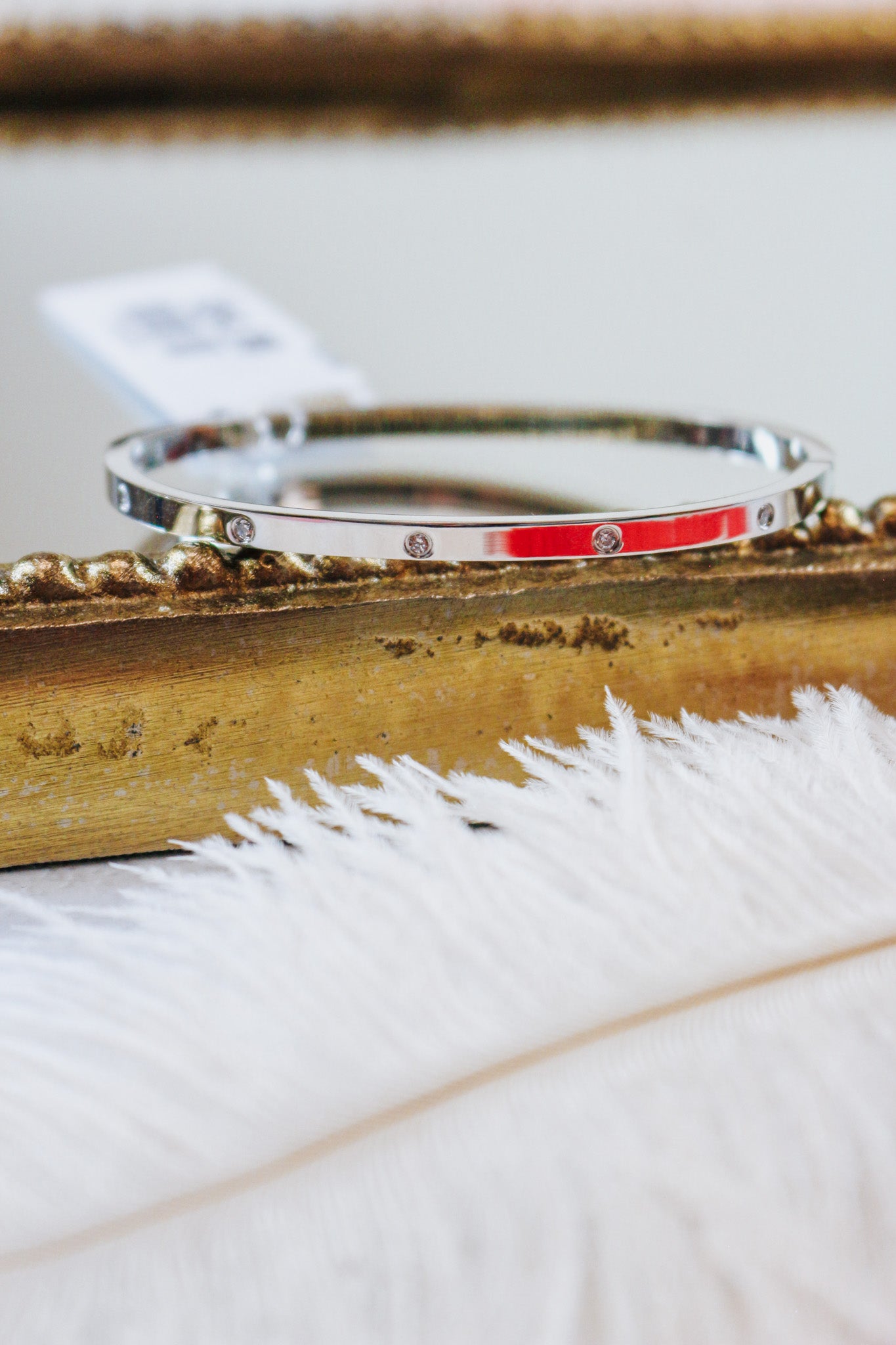 Add a touch of elegance and sparkle to any outfit with our Silver Jeweled Bangle Bracelet. Made of high-quality silver and featuring beautiful jewels, this bracelet is the perfect accessory for any occasion. Elevate your style and turn heads with this stunning piece.