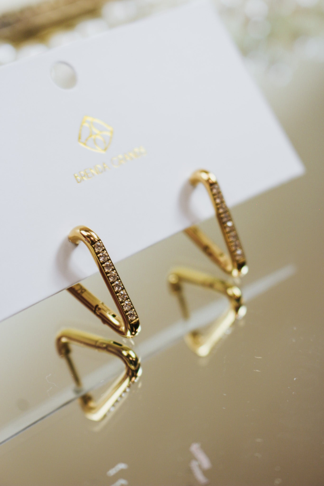 Gold Triangle Hoops with Diamonds - Waterproof
