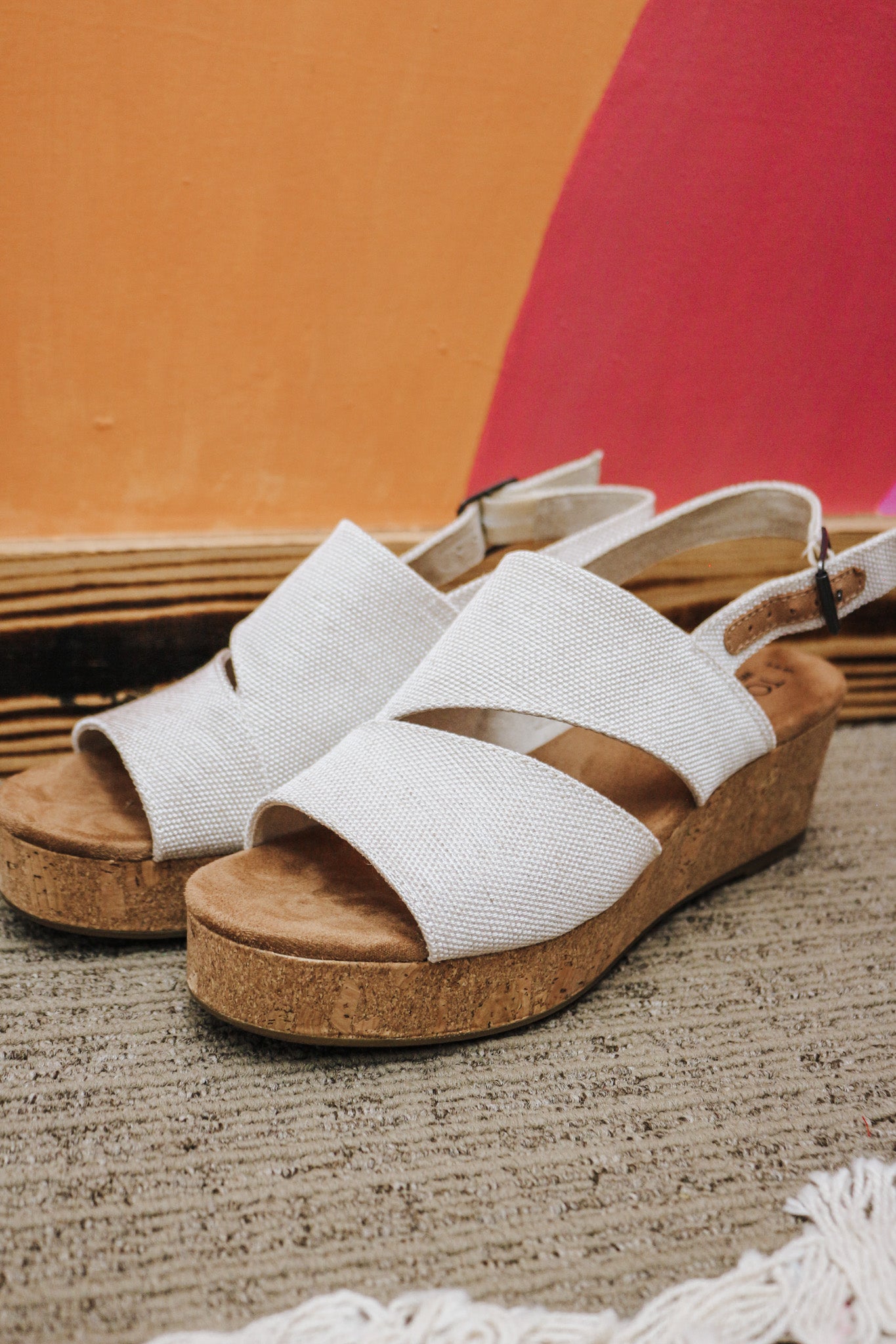 Claudine Cork Platform Wedge Slingback Sandals Toms