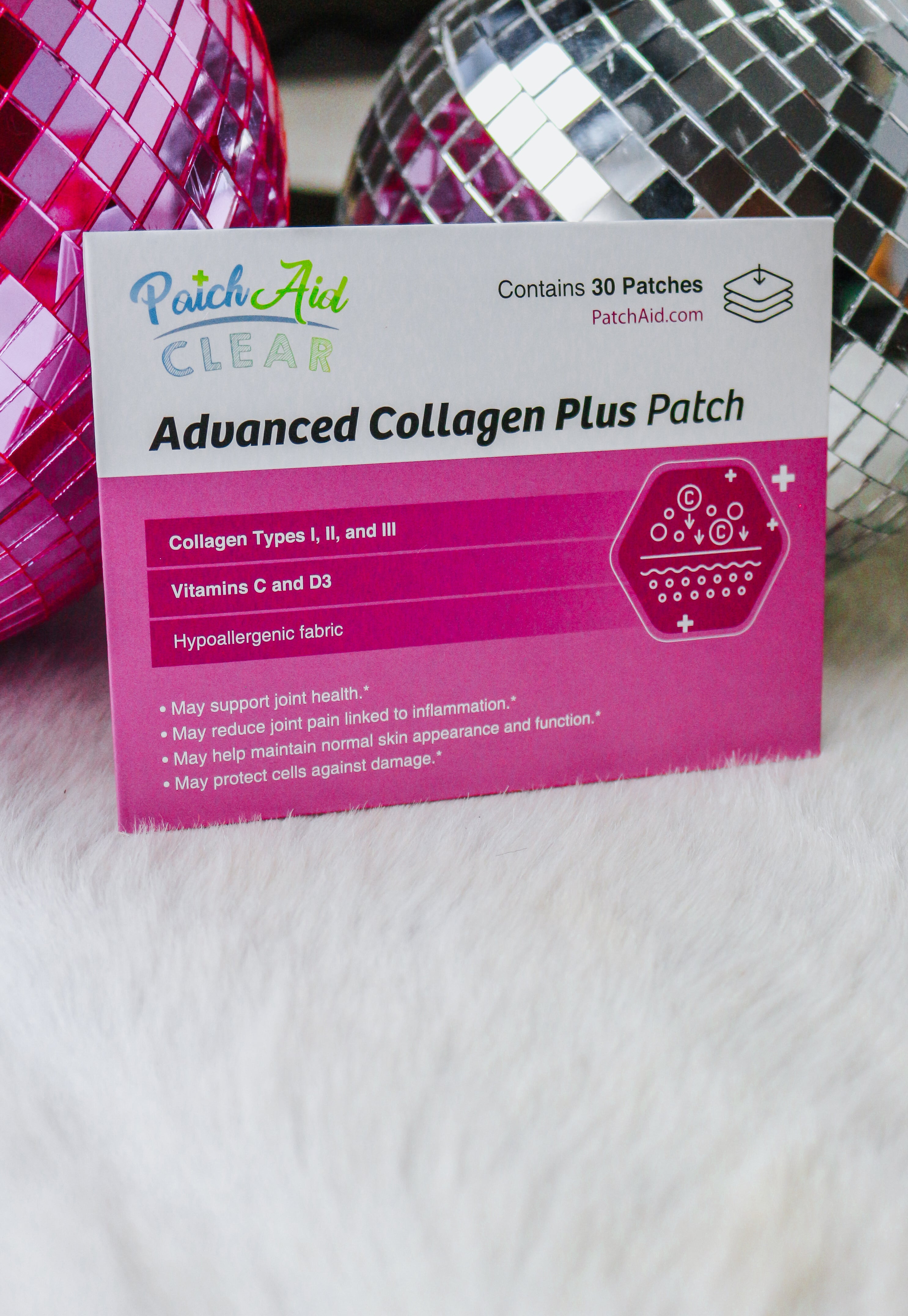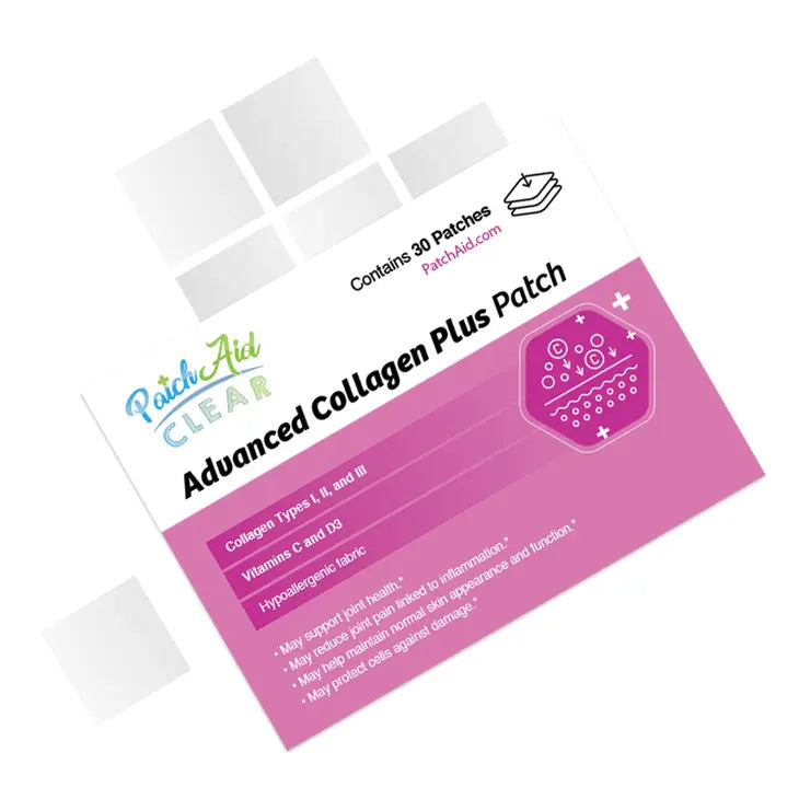 The Collagen Plus Vitamin Patch has three types of collagen to support joint, skin, hair, and nail health. Collagen Types I and III are present in bones, nail beds, and hair. Collagen Type II is the major protein in your knees and other joints, helping to provide cushioning support to prevent pain with movement and pressure. The Collagen Plus Vitamin Patch also has components that are used to make collagen in the body. Glucosamine, chondroitin, and hyaluronic acid are all needed for healthy collagen production and function. Vitamin C is needed for your body to produce collagen and cartilage. PatchAid vitamin patches are Latex, Lactose, Gluten, and Sugar-free. Please Note: Nutritional patches are a new technology. As with any nutritional supplements, consumers should use nutrition patches according to their healthcare providers' recommendations and regularly monitor nutrient levels through lab work as they would when taking any dietary supplements.