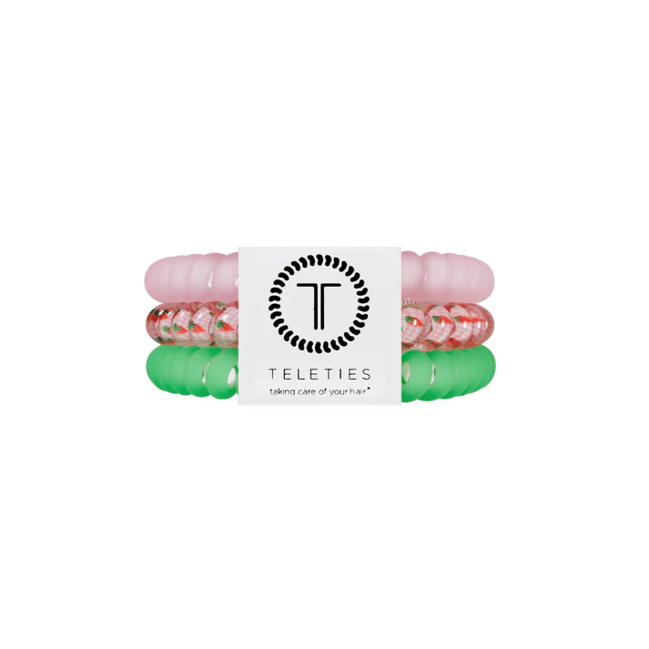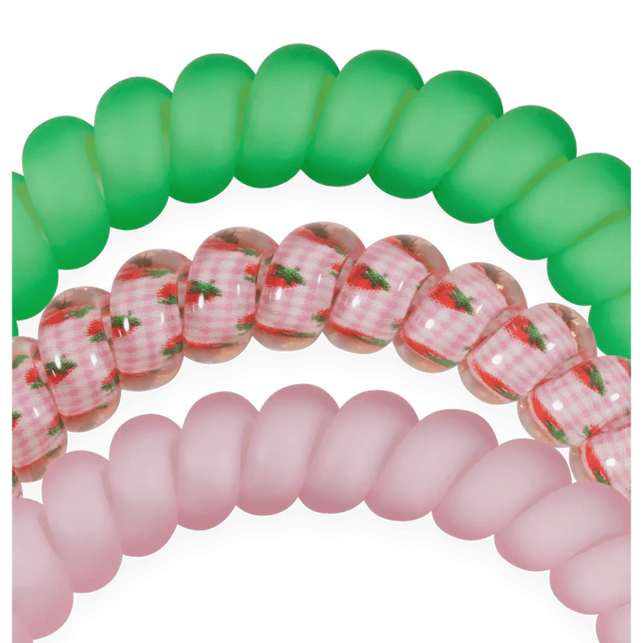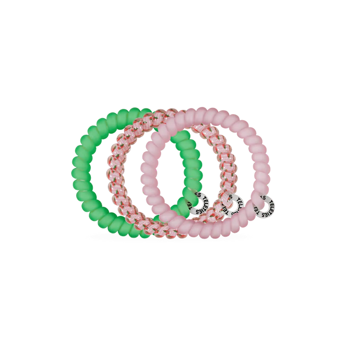 Handpicked Small Hair Ties in Pink and Green offer a strong grip without damage, doubling as a chic wrist accessory when not in use. Your new favorite hair essentials all year round.