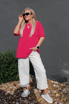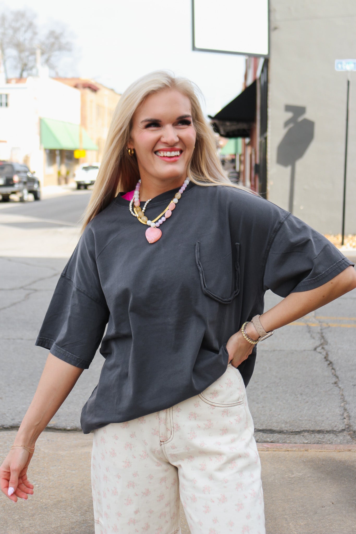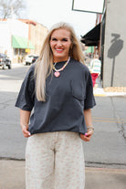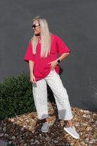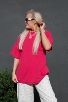 Meet the tee that's all personality and zero practical pockets. This oversized short-sleeve stunner features a decorative pocket outline that's pure visual fun—a wink to retro style without the bulk. Choose from two bold colors that pack serious attitude. Layer it, tuck it, or wear it loose for that effortlessly cool aesthetic that works with everything in your closet.
