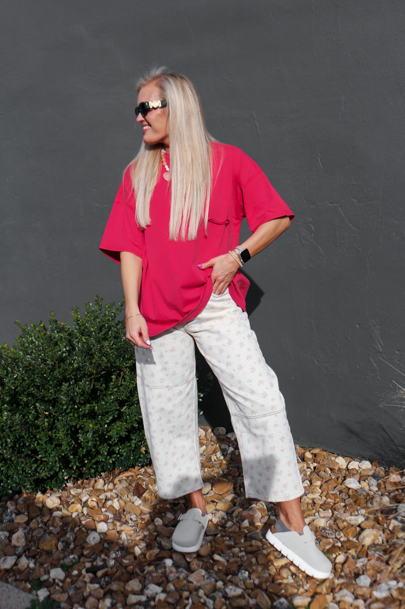 Stay TTS! Jenna is wearing a small. Oversized fit.