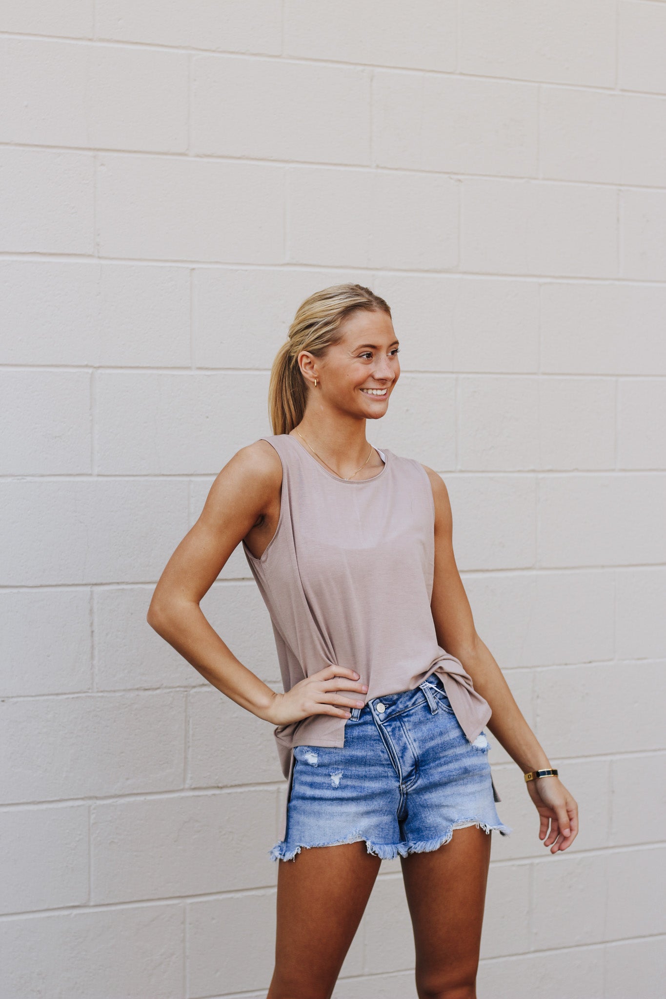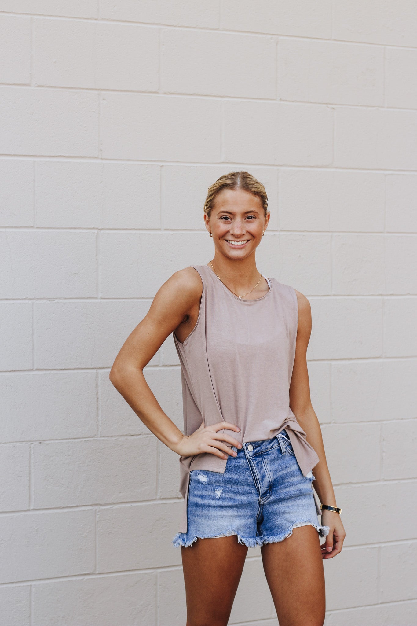Stuck On Repeat Ash Mocha Tank