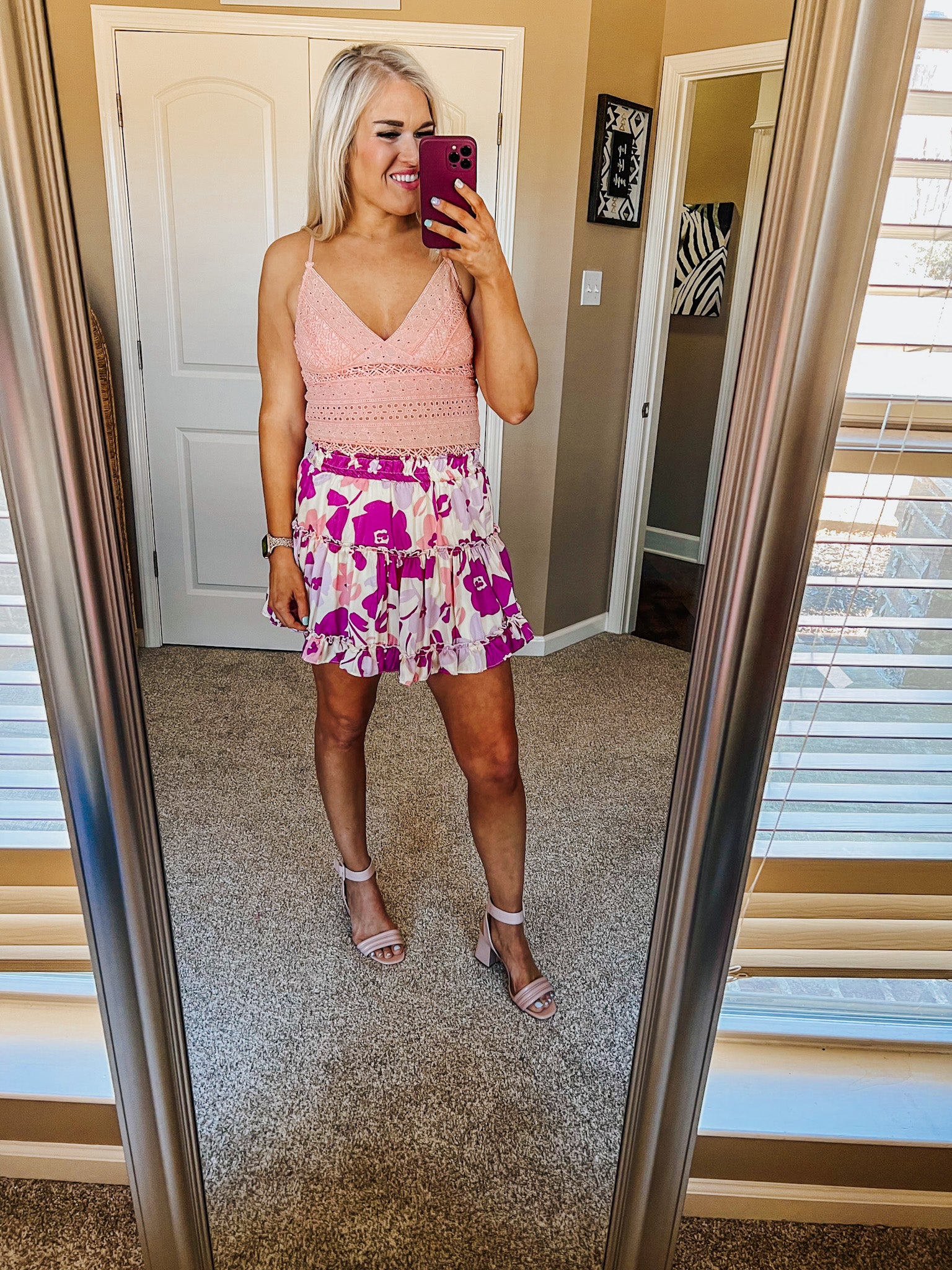 Beach Bash Pink Lace Cropped Tank Top