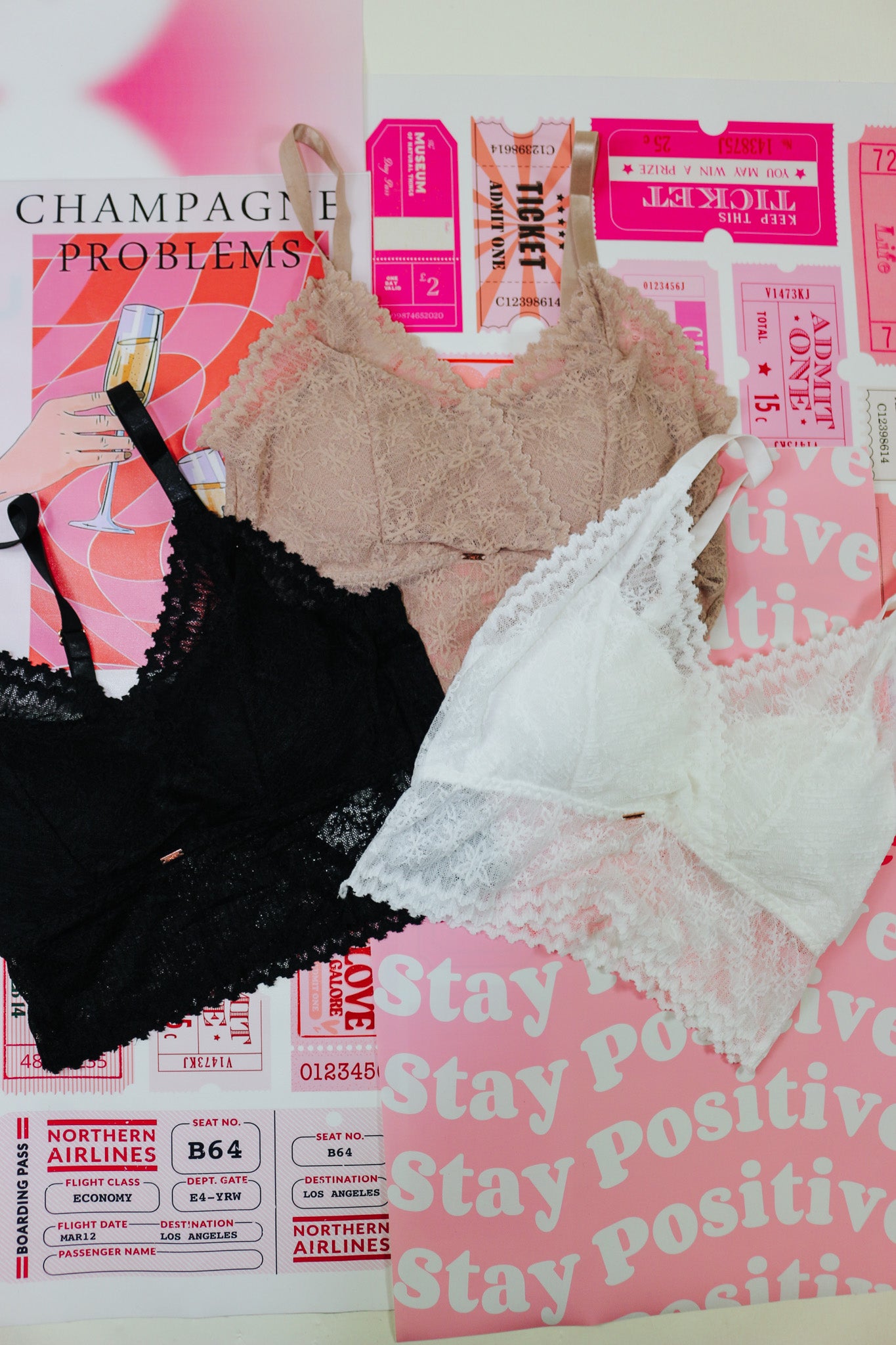 Elevate your lingerie game with our Skye Lace Bralette. Available in black, mocha, and white, this bralette adds a touch of elegance to any outfit. Feel confident and comfortable with its soft and delicate lace fabric. Make a statement with Skye.