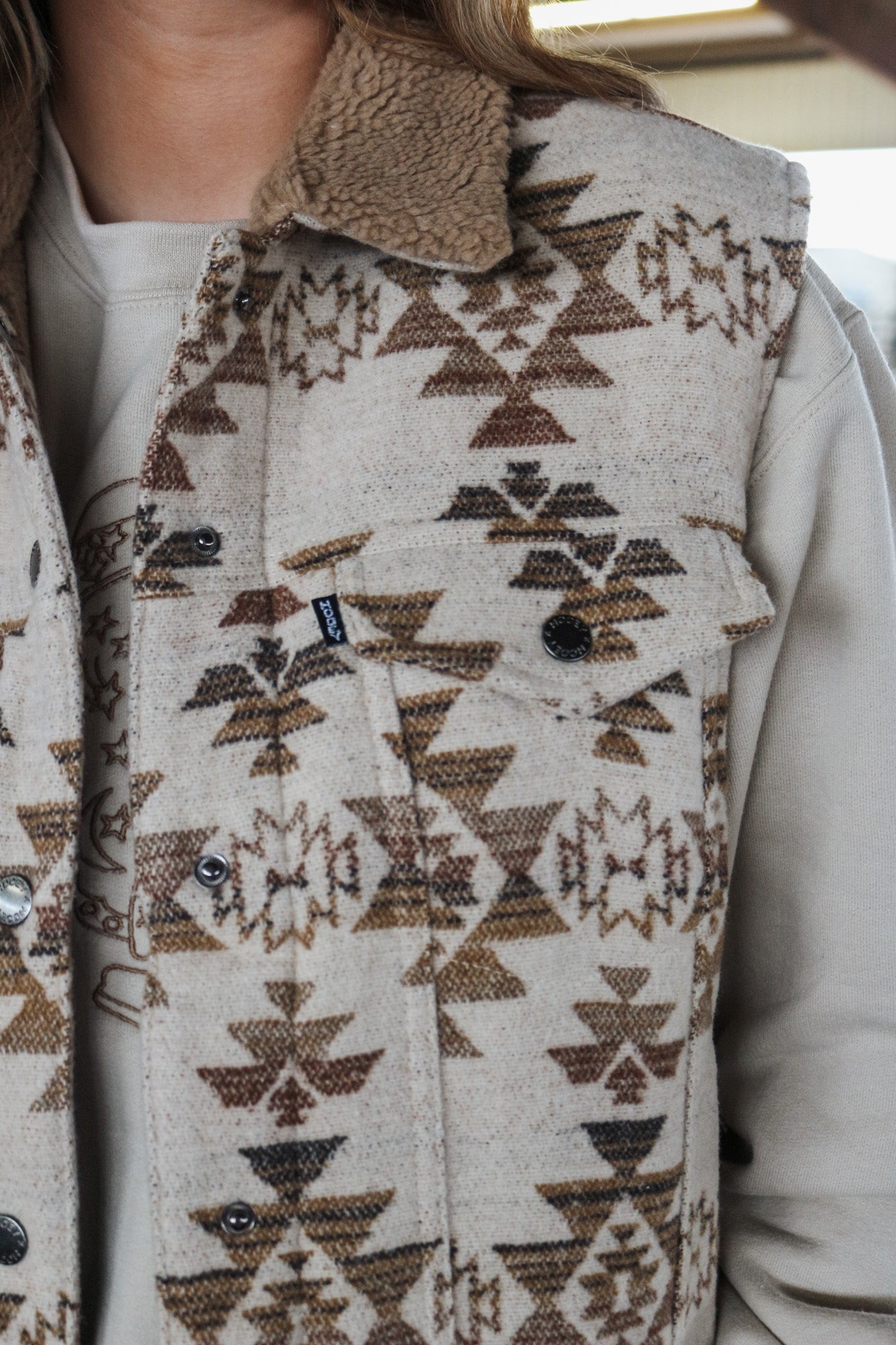 Introducing the Hooey Women's Sherpa Vest, now available in two stunning colors - grey and tan aztec! Stay cozy and stylish with our comfortable sherpa material. Perfect for layering during chilly days or adding a touch of texture to any outfit. Upgrade your wardrobe with Hooey today!