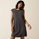 A little country and a little rock and roll, this mineral-washed T-shirt dress is the star of the show wherever you wear it. With a switch of accessories, it goes from casual to edgy, so you can take it from Saturday brunch with the girls to front row at your favorite festival concert.