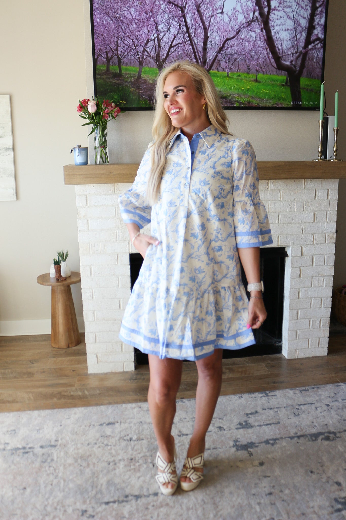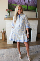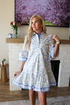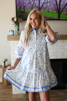 Slip into effortless charm with this blue floral collared dress, designed for those who love a touch of vintage flair. The playful half-button front makes it easy to dress up or down, while quarter sleeves offer the perfect balance of coverage and breathability. Whether you're heading to brunch or a casual date night, this romantic piece pairs beautifully with sneakers or heels. A wardrobe essential that promises timeless style with every wear.