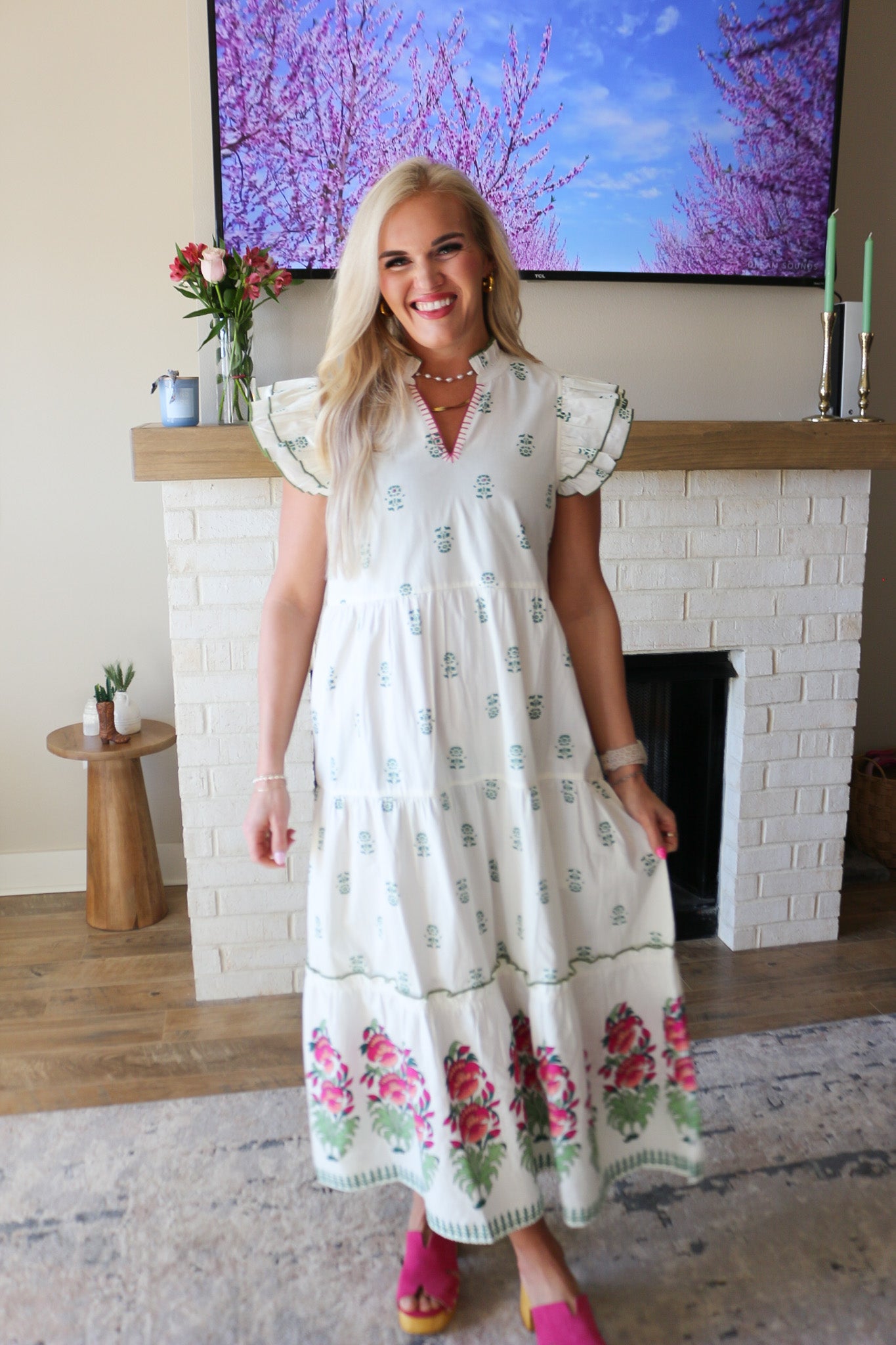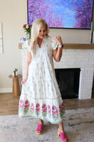 Twirl into romance with this enchanting white floral maxi dress. The Welton features delicate blooms scattered across a flowing silhouette that moves beautifully with every step. Perfect for garden parties, brunches, or any occasion calling for effortless elegance. The maxi length and airy fabric create a dreamy, feminine look that whispers vintage charm with a modern twist. Slip it on and let the florals do the talking.