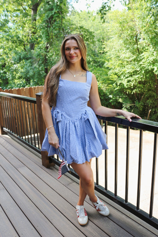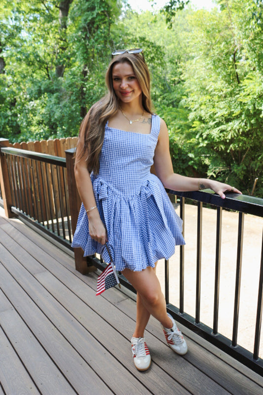 Fancy Blue Floral Puff Sleeve Mini Dress