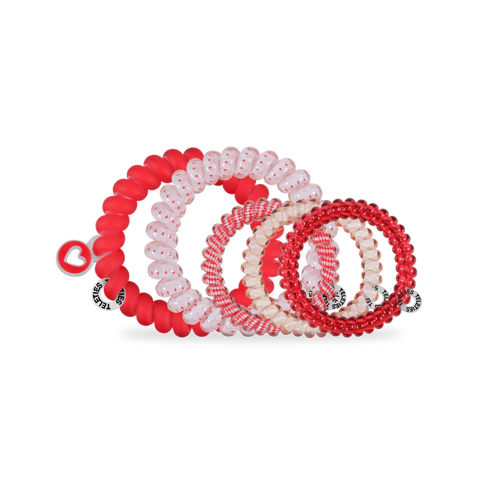 Fall in love with the perfect hold. The Soul Mate Mix Pack features five premium, water-resistant hair ties designed to provide a secure, all-day grip without the breakage, creases, or "ponytail headaches" caused by traditional elastics. Whether styled in a high pony or worn as a chic bracelet, these red and white essentials are the soul mate your hair has been waiting for.