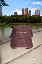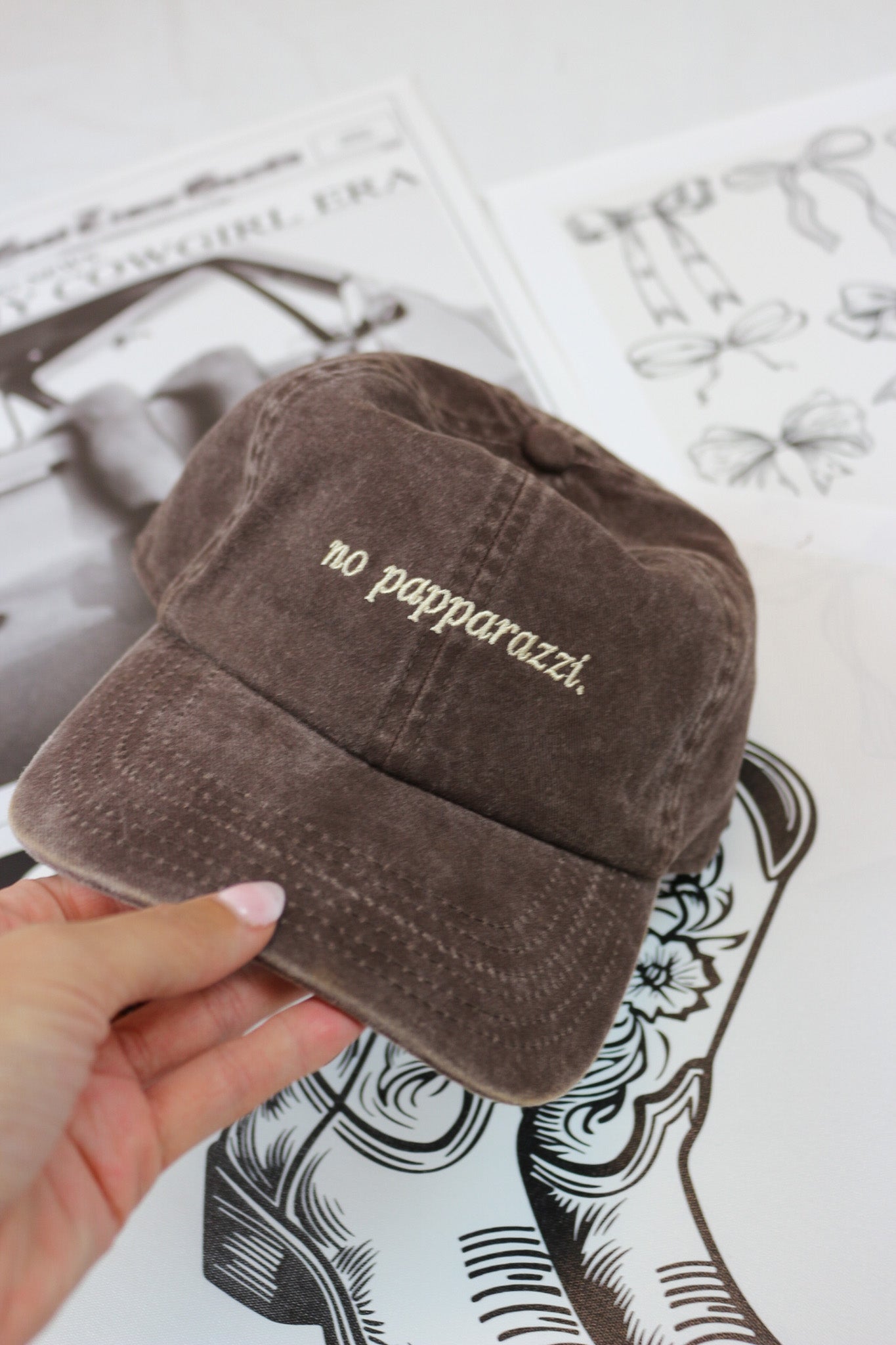Brown washed dad cap - this is going to be a traditional dad cap/baseball cap fit! Low profile, no structure, and sooo giving early 2000's
