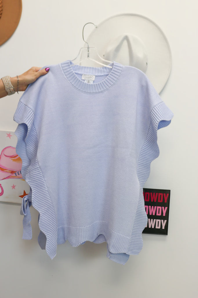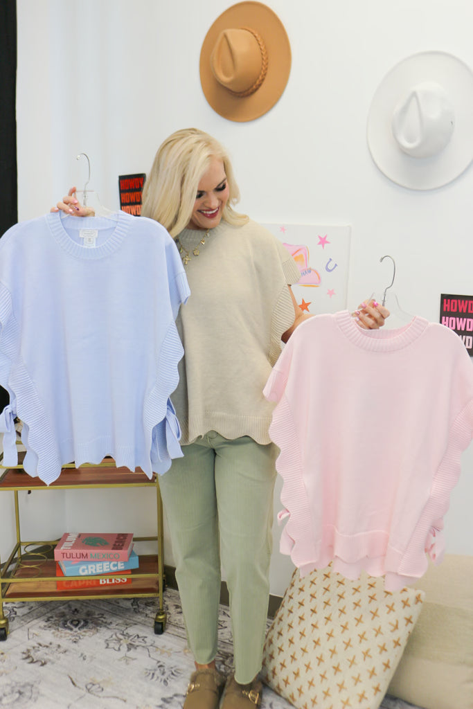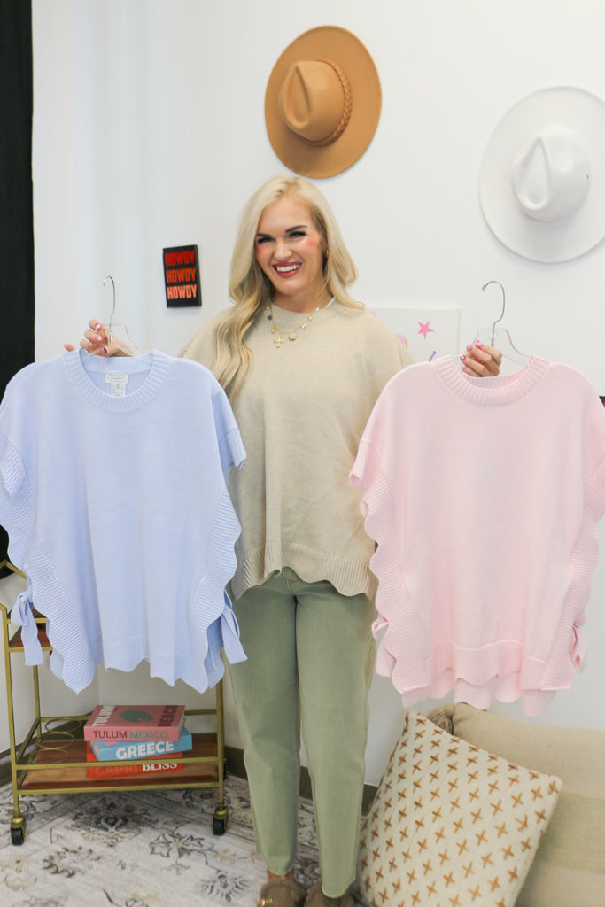 Elevate your seasonal wardrobe with the Rigsby Scallop Sweater, a perfect blend of modern style and feminine charm. This lightweight, short-sleeve knit features elegant scalloped edges and functional side ties that allow for a custom, flattering silhouette. Whether you’re layering it for a professional look or pairing it with denim for brunch, this versatile top is the ultimate transitional piece for your closet.