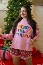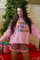 Celebrate the holiday season in cozy style with the Merry Everything Pink Christmas Sweatshirt. Its soft fabric keeps you warm and comfortable, while the cheerful pink design spreads festive joy. Perfect for holiday gatherings or relaxing at home, this sweatshirt brings a playful and uplifting touch to your winter wardrobe. Embrace the spirit of the season with comfort and color.