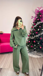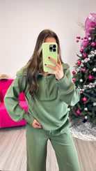 Get ready to take charge in style with this olive quarter zip set. The relaxed fit keeps you comfortable whether you're conquering your to-do list or kicking back with friends. Layer the zip top over your favorite tee for instant versatility, or rock the matching bottoms solo for effortless everyday wear. Perfect for anyone who refuses to choose between looking good and feeling great. Make moves in this go-anywhere set that's as ready for action as you are.