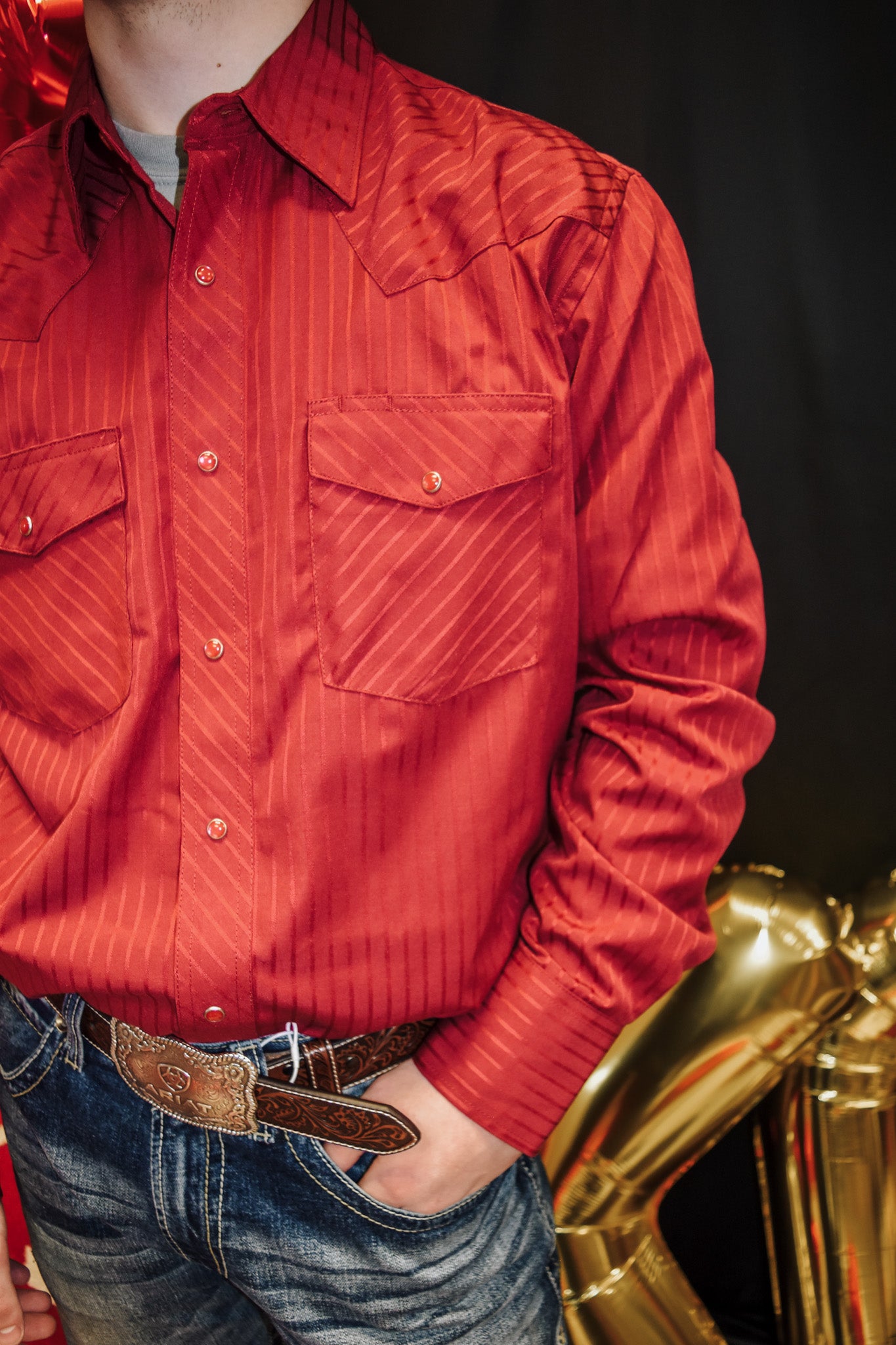 TONE ON TONE WESTERN SHIRT WITH A SPORTY TWIST. It's a subtle touch, but a stylish one -- look closely and you'll see the tone on tone stripes on this long sleeve shirt. It's a quiet polish to an authentic Western favorite.
