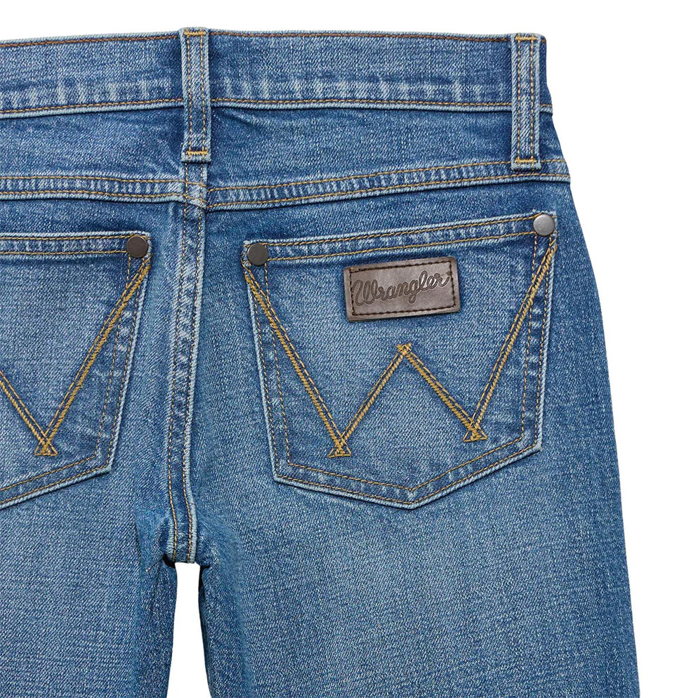 The Boy's Retro Relaxed Bootcut Jeans from Wrangler combine modern comfort with timeless Western style. Designed with a relaxed seat and thigh, these jeans give him plenty of room to move-perfect for active days on the ranch or at school. The adjust-to-fit waistband ensures a comfortable, custom fit as he grows, while the classic denim finish and bootcut leg make them a true cowboy essential. Durable and easy to wear, these jeans deliver that signature Wrangler quality built to last.