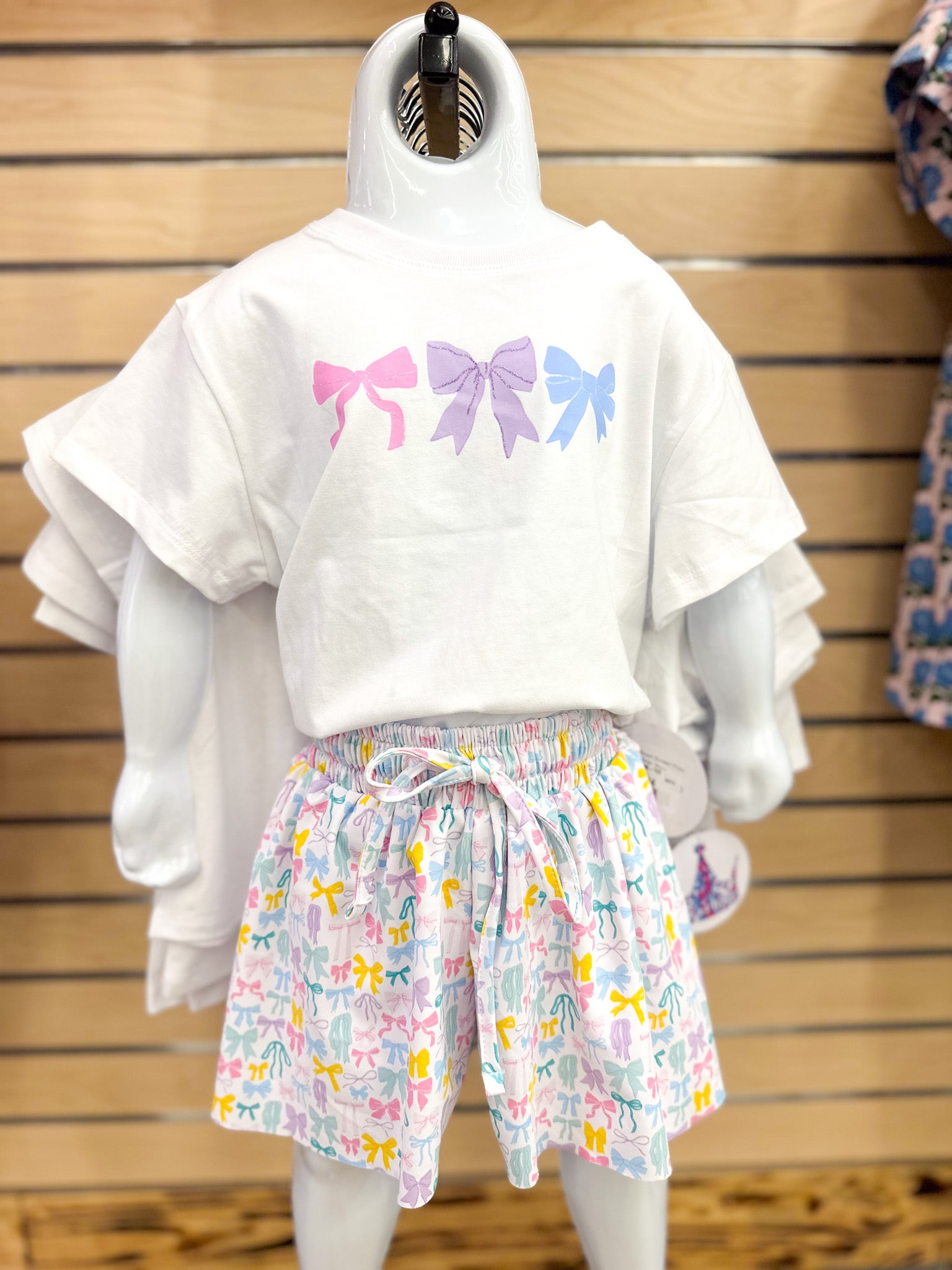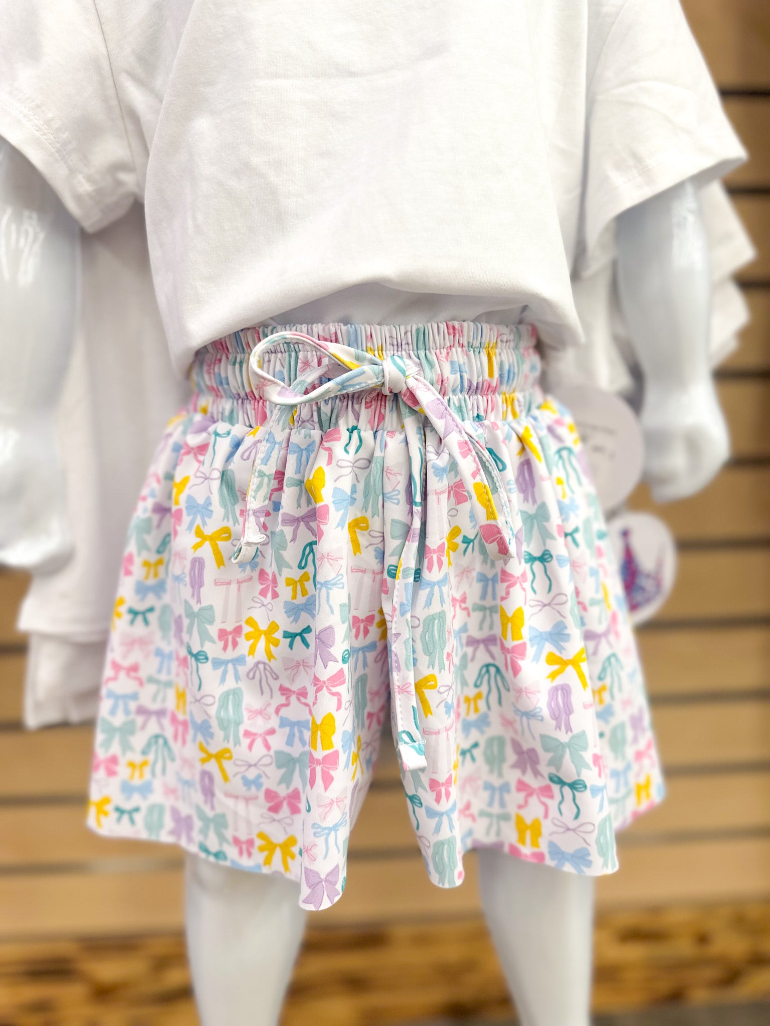 Kid's Pastel Bow White Shorts