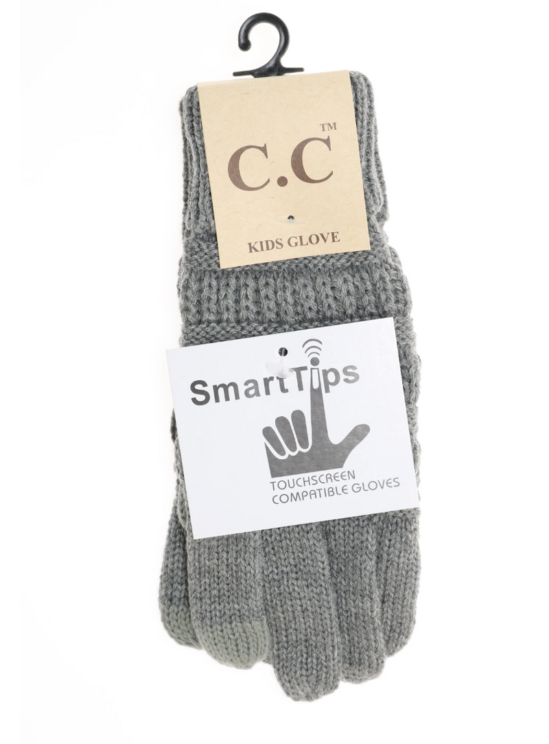 Kids Solid Fuzzy Lined Light Grey Mittens