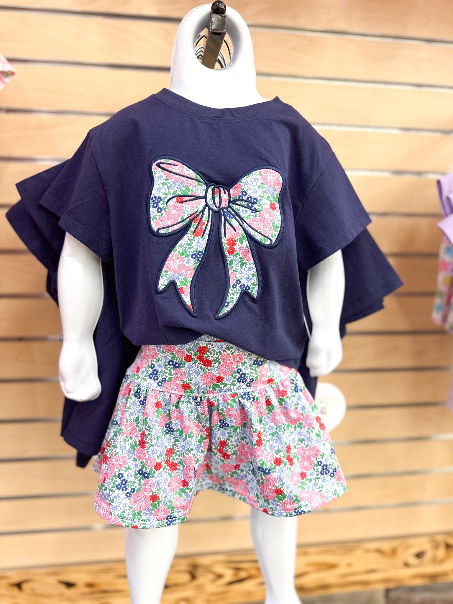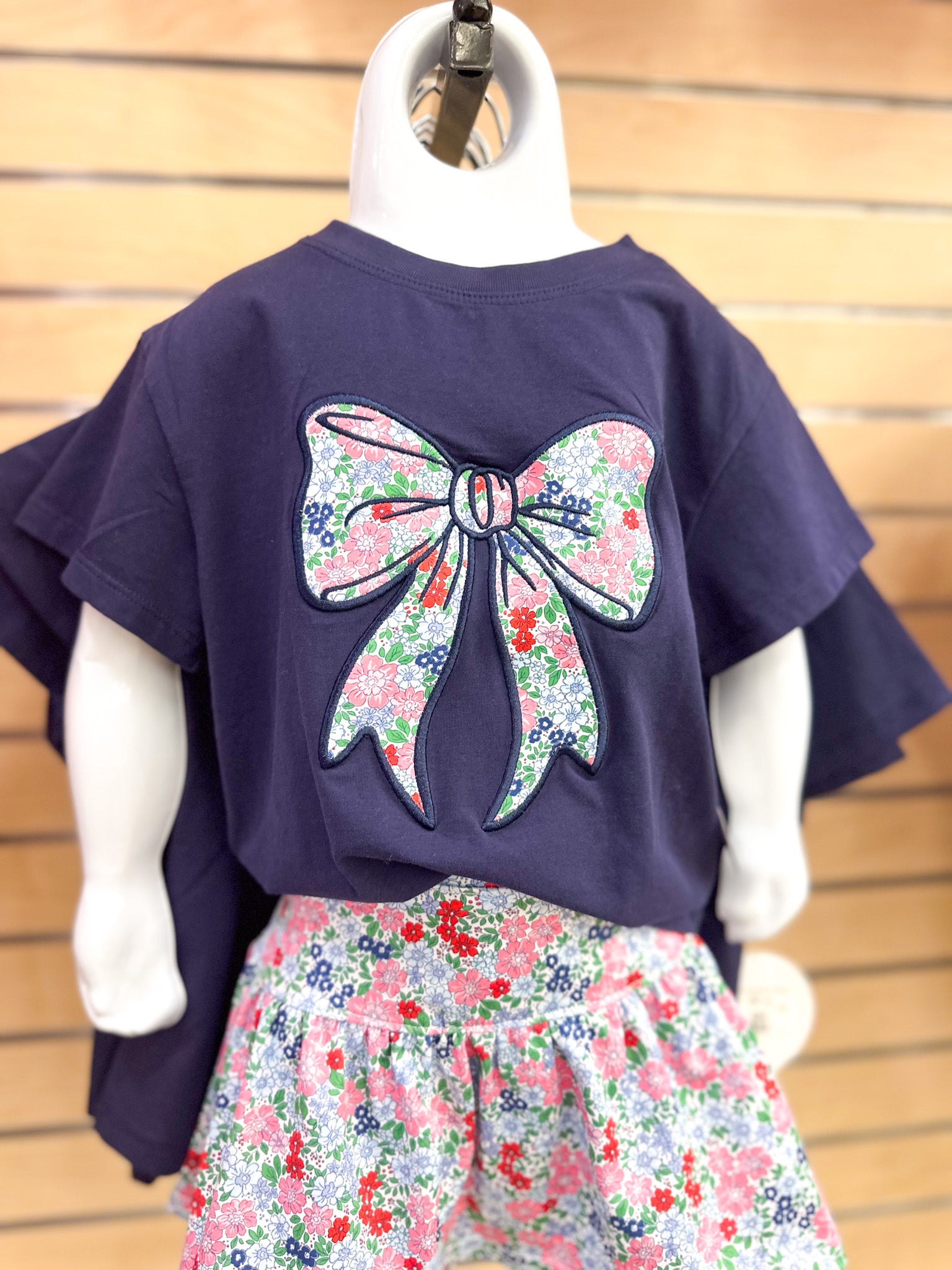 A navy tee that's anything but ordinary! This youth girl's style features an adorable floral bow design that brings charm and personality to everyday wear. Perfect for mixing with jeans, skirts, or shorts, it's the kind of piece that makes getting dressed fun. Soft, comfortable, and ready for whatever adventure comes next—whether that's school, playdates, or just hanging out with friends.