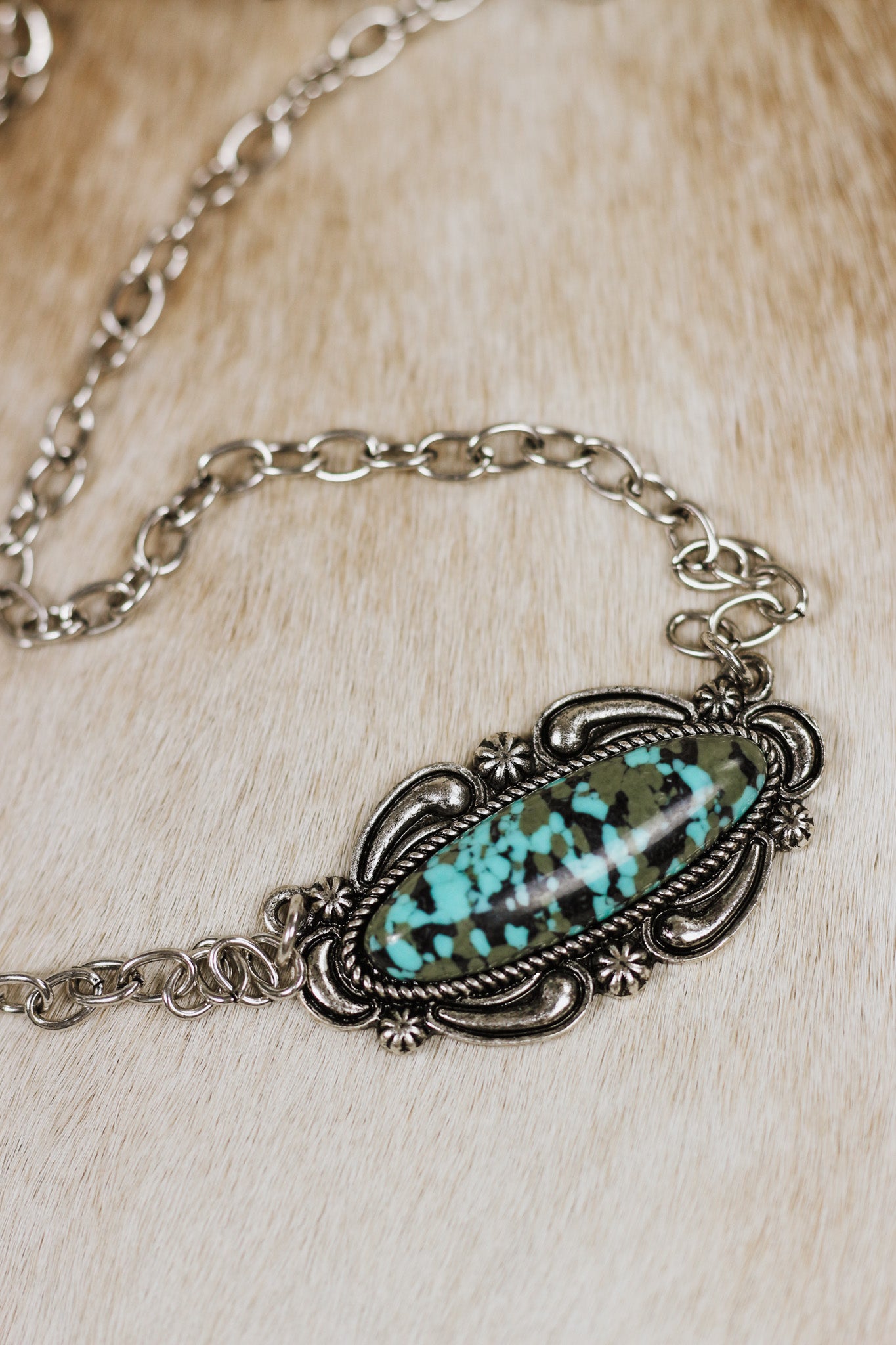 Silver Chain with Oblong Marbled Pendant