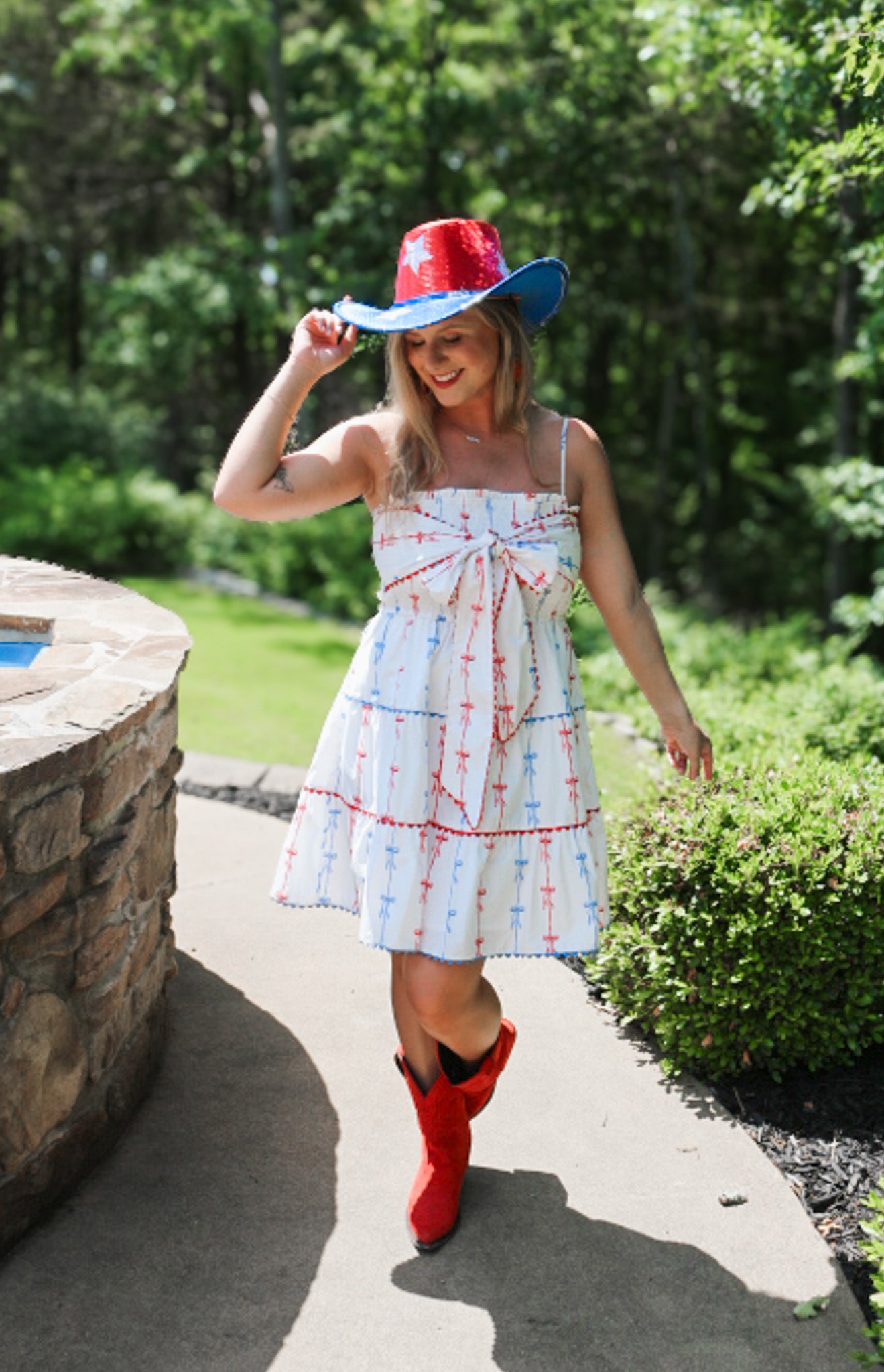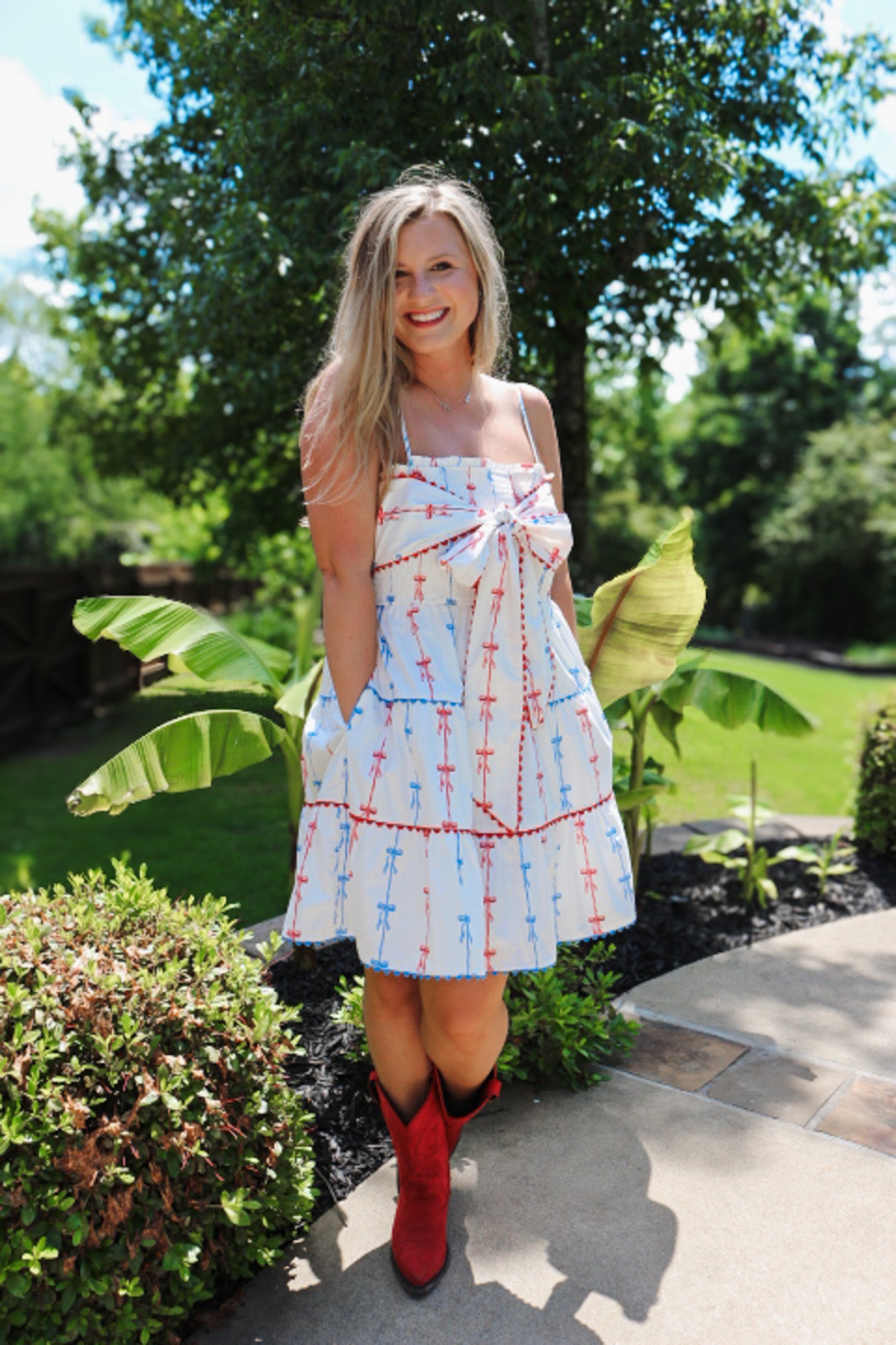 Fall in love with our American Sweetheart dress! This charming Off White Bow Dress features a flattering front tie that accentuates your figure and adds a touch of elegance to your look. Be the center of attention and feel confident in this must-have piece.