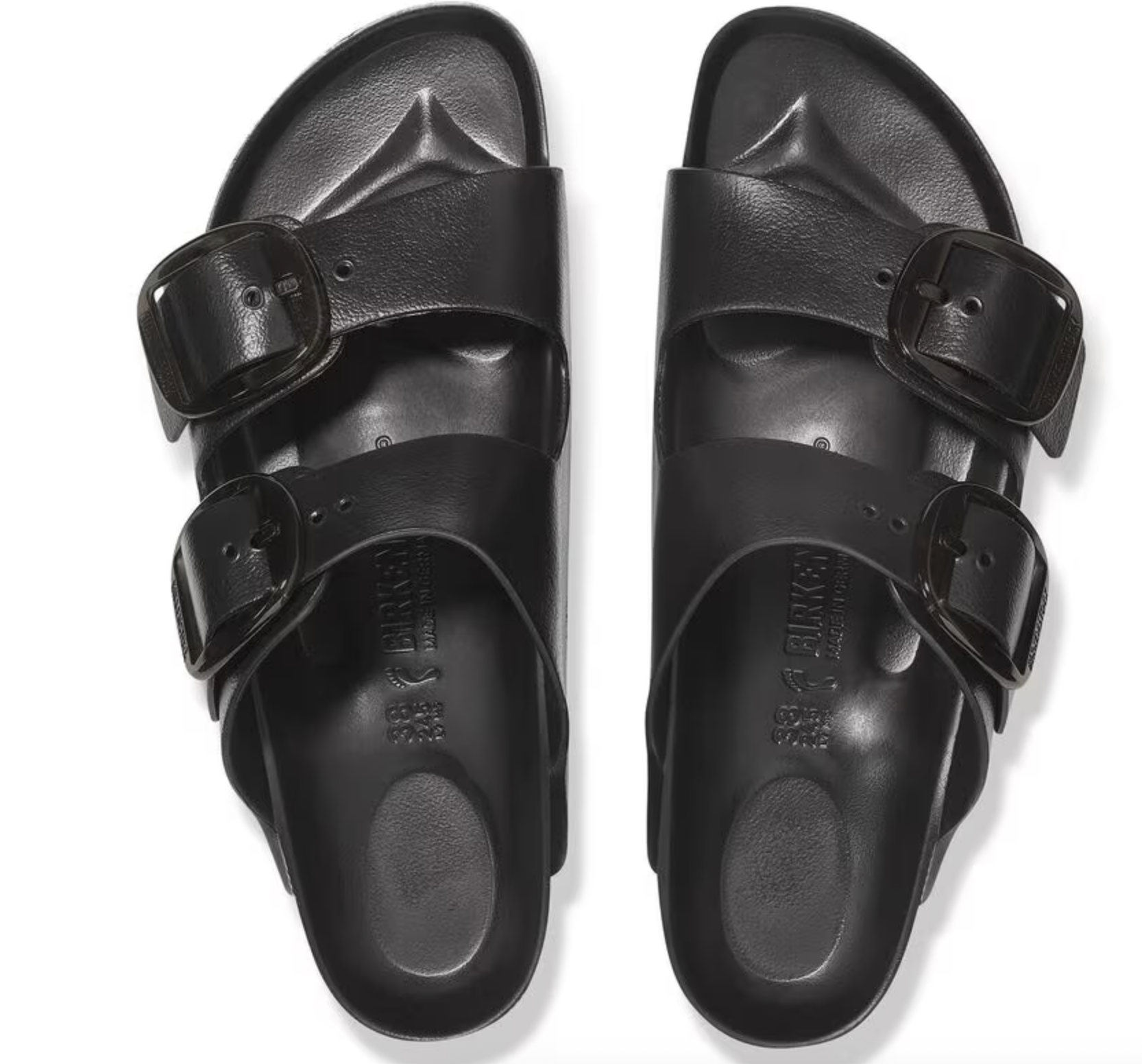 The BIRKENSTOCK Arizona is a genuine classic. Modeled on the cork sandal, this version is made from EVA. The high-quality, odor-neutral EVA has been tested for harmful substances and combines numerous positive attributes: it is very light, highly elastic, water-resistant, and skin-friendly and offers the comfort you have come to expect from BIRKENSTOCK. This version features our popular Big Buckle made from a stainless synthetic material and makes an impression with its durability and minimalist design.