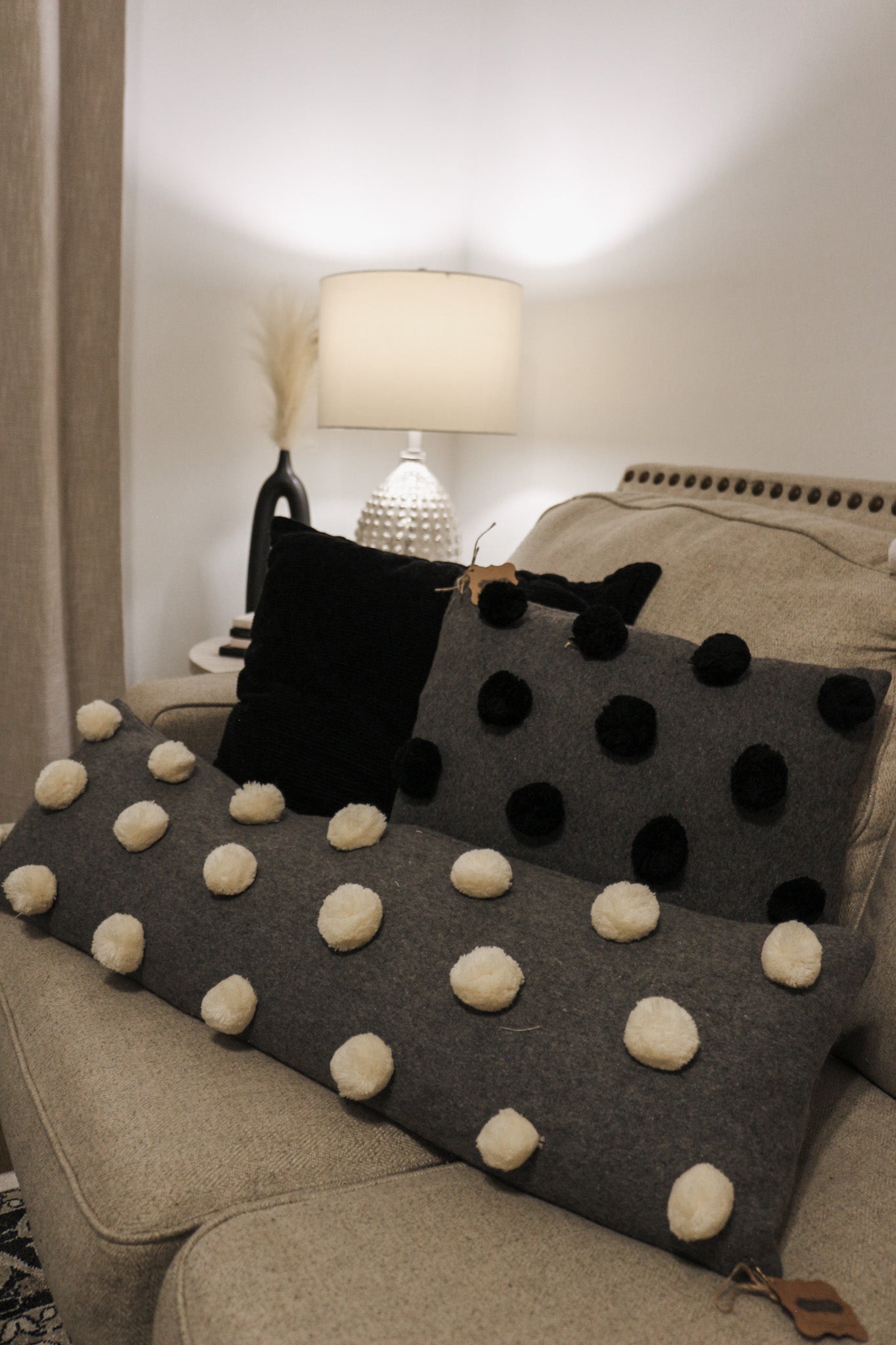 Black Pom Pom Pillow -2 Styles