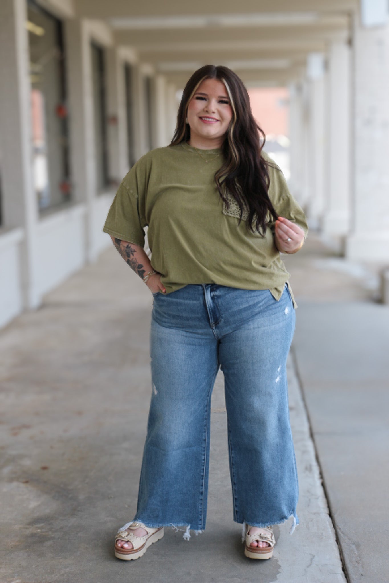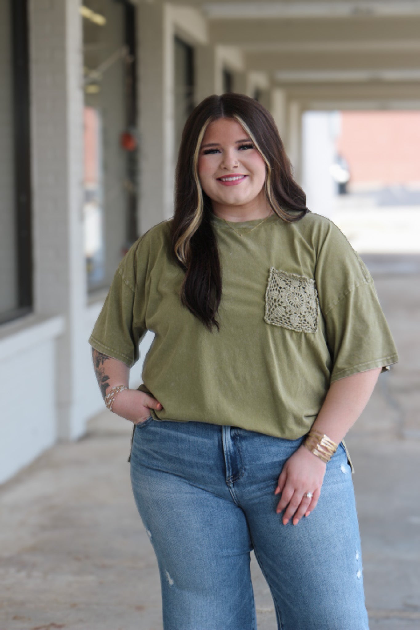 Elevate your casual wardrobe with our Business To Handle Olive Pocket Tee, featuring delicate lace details that transform this everyday essential into a statement piece. The subtle lace accents add feminine charm to the classic olive silhouette, perfect for those who demand both style and functionality.