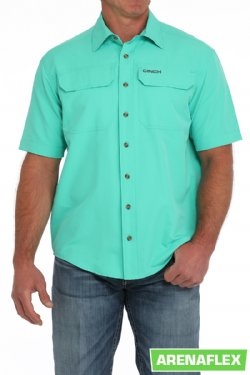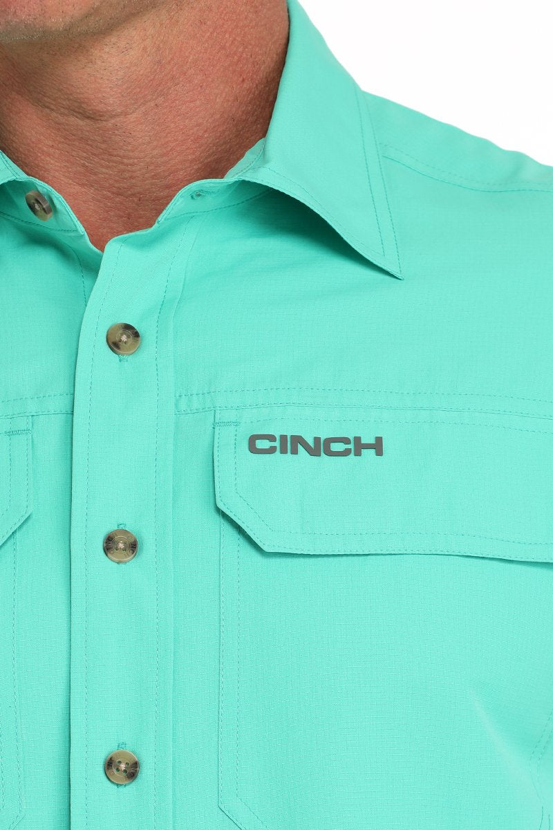 Cinch Men's Turquoise Ripstop Solid Button Down Western Shirt