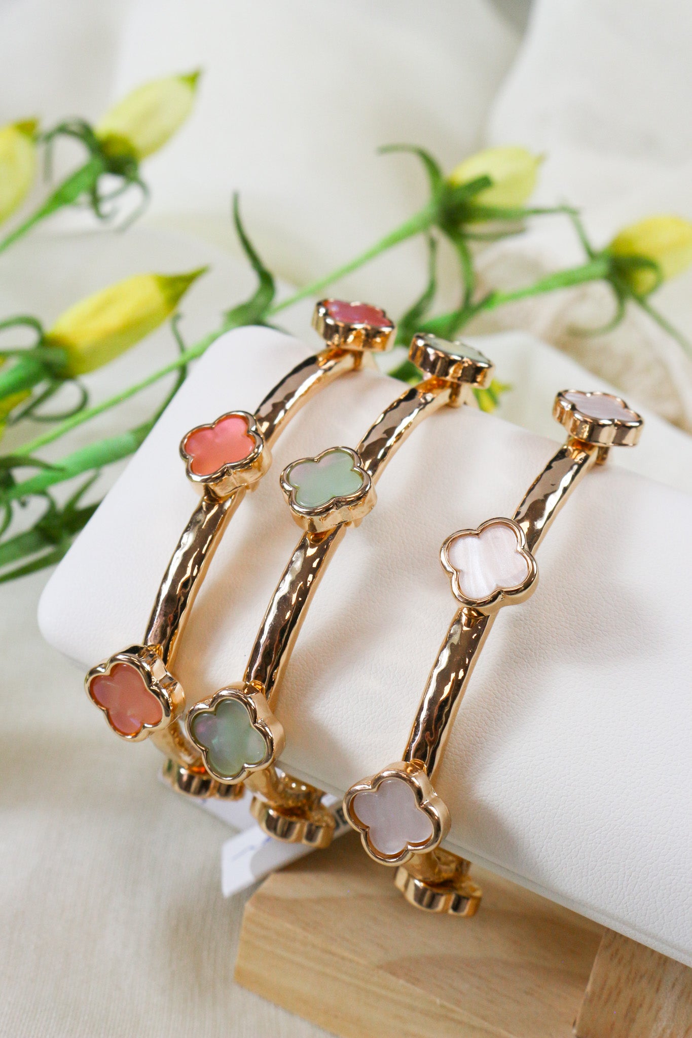 Add a touch of luck to your outfit with the Clover Gold Stretch Bracelet! With its stretch design and three colors to choose from, this bracelet is both versatile and stylish. Bring some charm to your day with this unique piece!