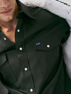 Cowboy Cut Firm Finish Long Sleeve Western Snap Work Shirt- Black Forrest Green