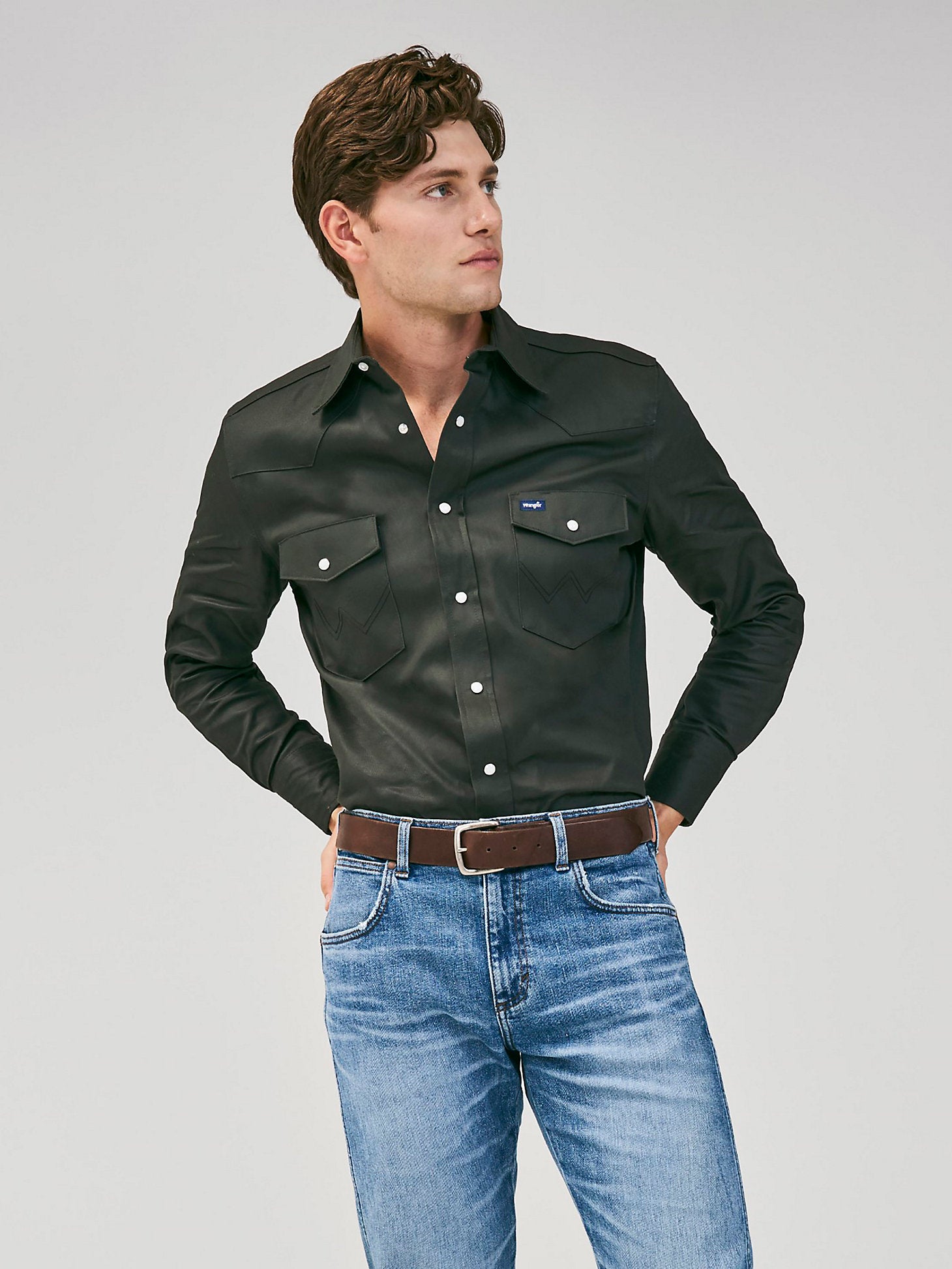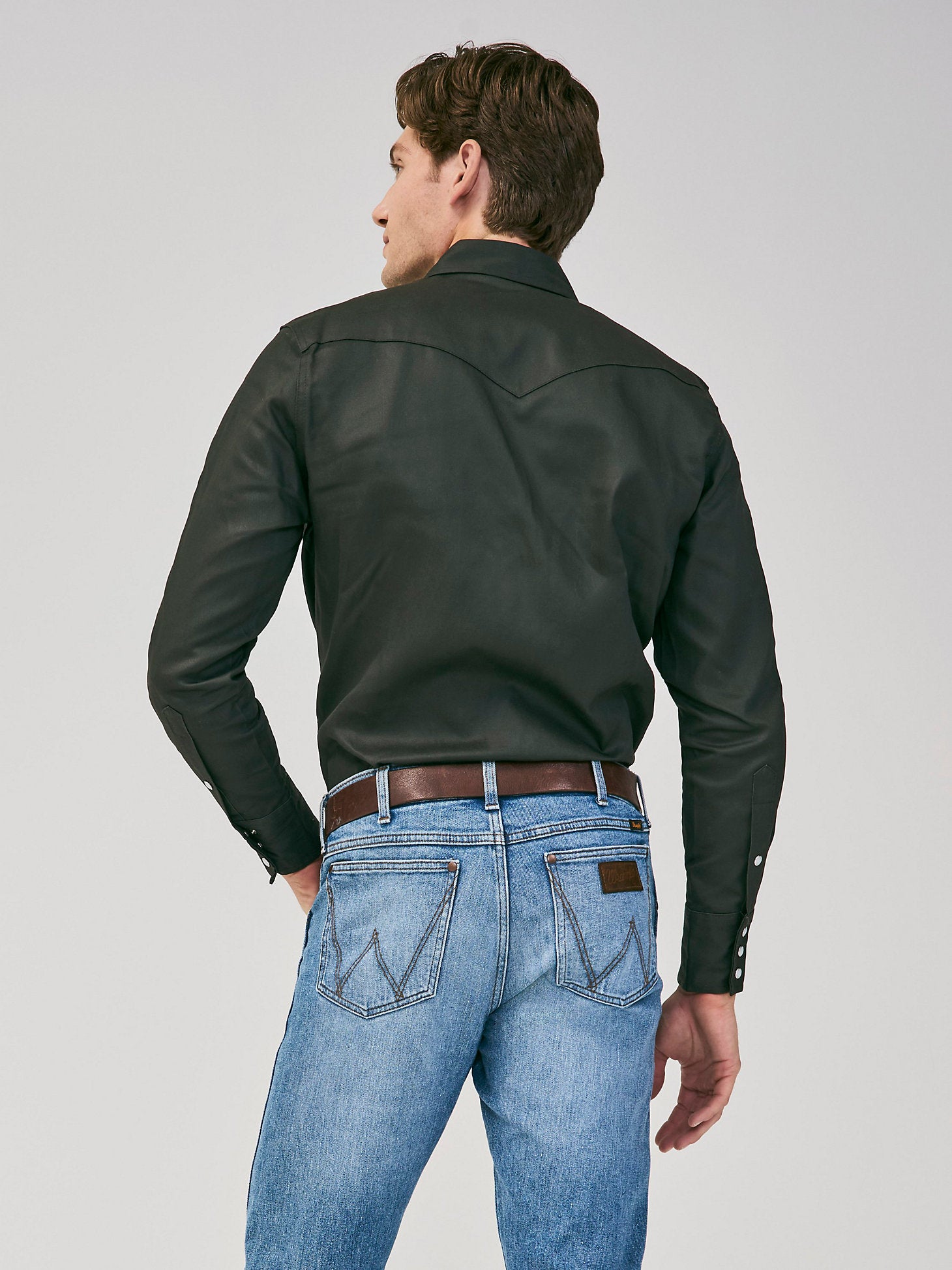 When the going gets tough, you'll be glad to know this shirt has your back. Wrangler work shirts are cut above the rest and they have certainly earned their credentials in the eyes of cowboys across the country. These hard working wardrobe essentials come complete with all the authentic details you know and love about wrangler Western shirts, including a spread collar and spade flap snap pockets with snap closure as well as Western inspired front and back yokes. But we didn't stop there. Wrangler Cowboy Cut shirts also come with a convenient pencil slot and the iconic Wrangler logo riser label on the left pocket. Plus men's Cowboy Cut firm finish work shirts feature a rigid look and feel that will last wash after wash.