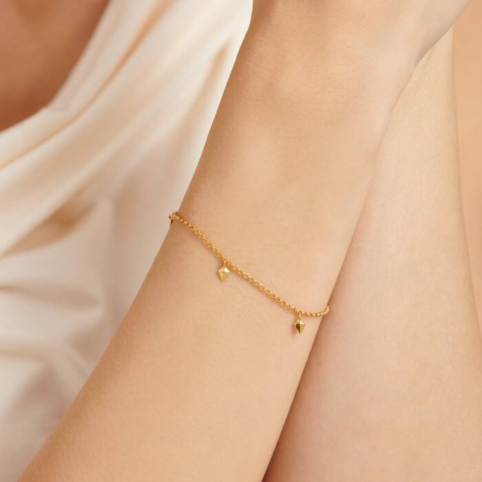 Certified waterproof, our Estee Waterproof Gold Charm Bracelet has been designed in durable 18K Gold PVD Coating, making it waterproof, sweat-proof and life-proof. This bracelet features five diamond-shaped golden charms, perfect for wearing solo or layered with our other bracelets to really make a style statement.