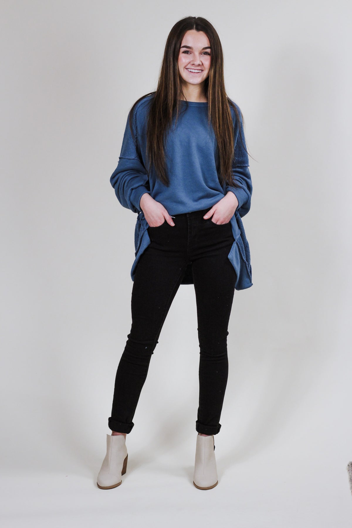 High rise skinny jeans. It's the stunning fit that sits slightly lower on the waist and fitted skinny in the hips through the leg. Full inseam on stretch denim in black shade for the sophisticated ensemble pairing.