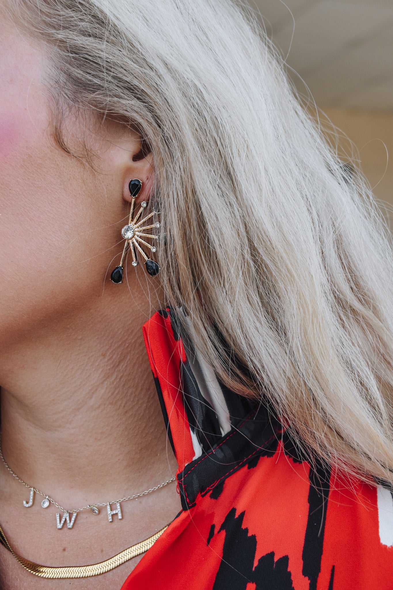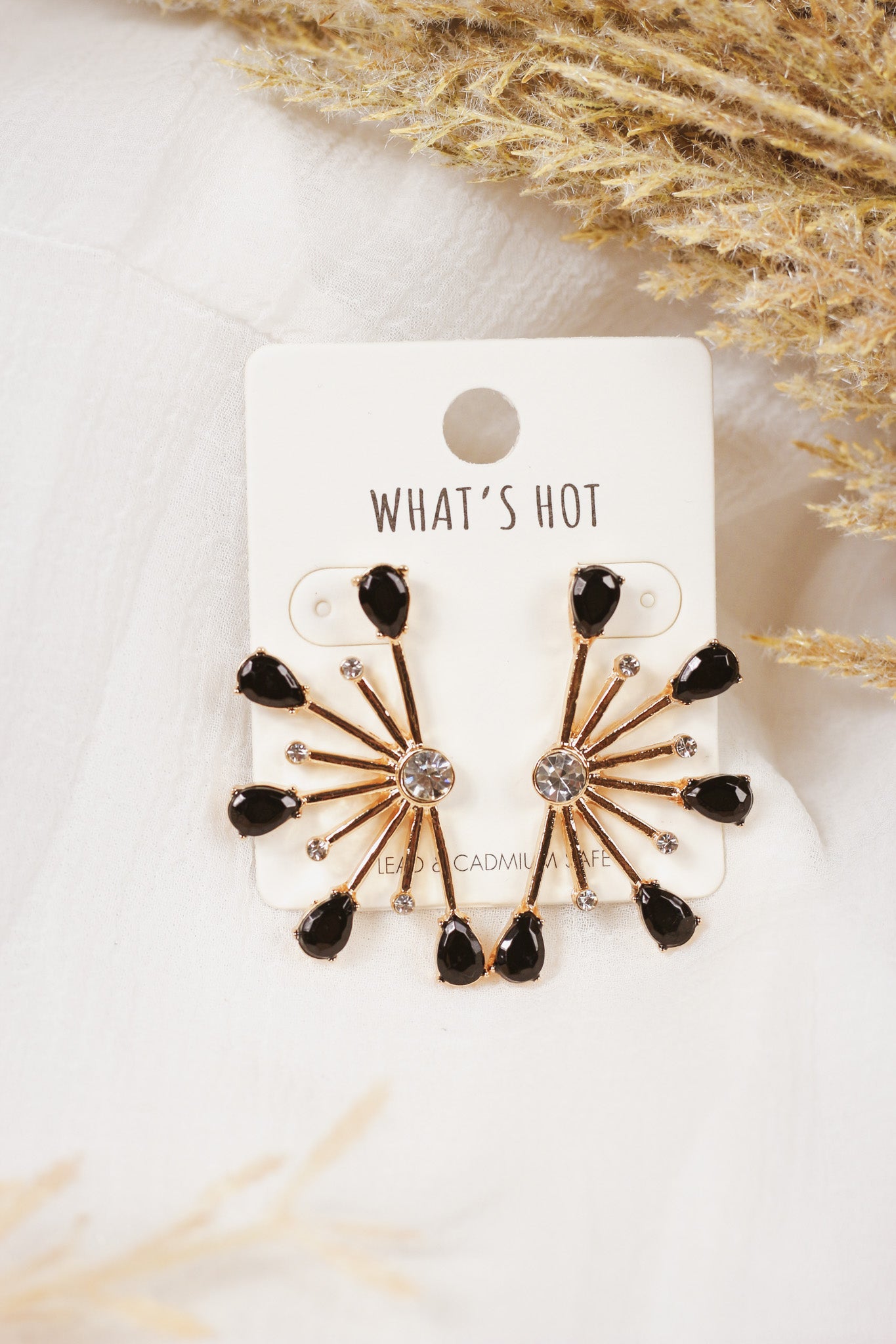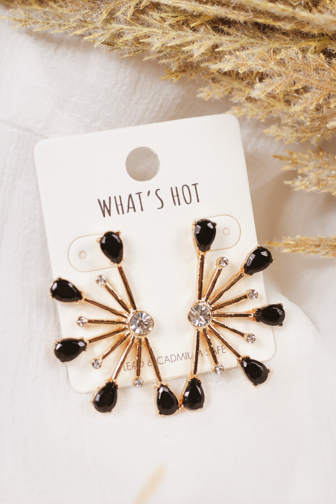 Get ready to rock the night away—without compromising your fashion sense. This stylish 1.5" earring features a classic black crystal and a spiked gold stud. Perfect for glamorous evenings, bold days, and everything in between!