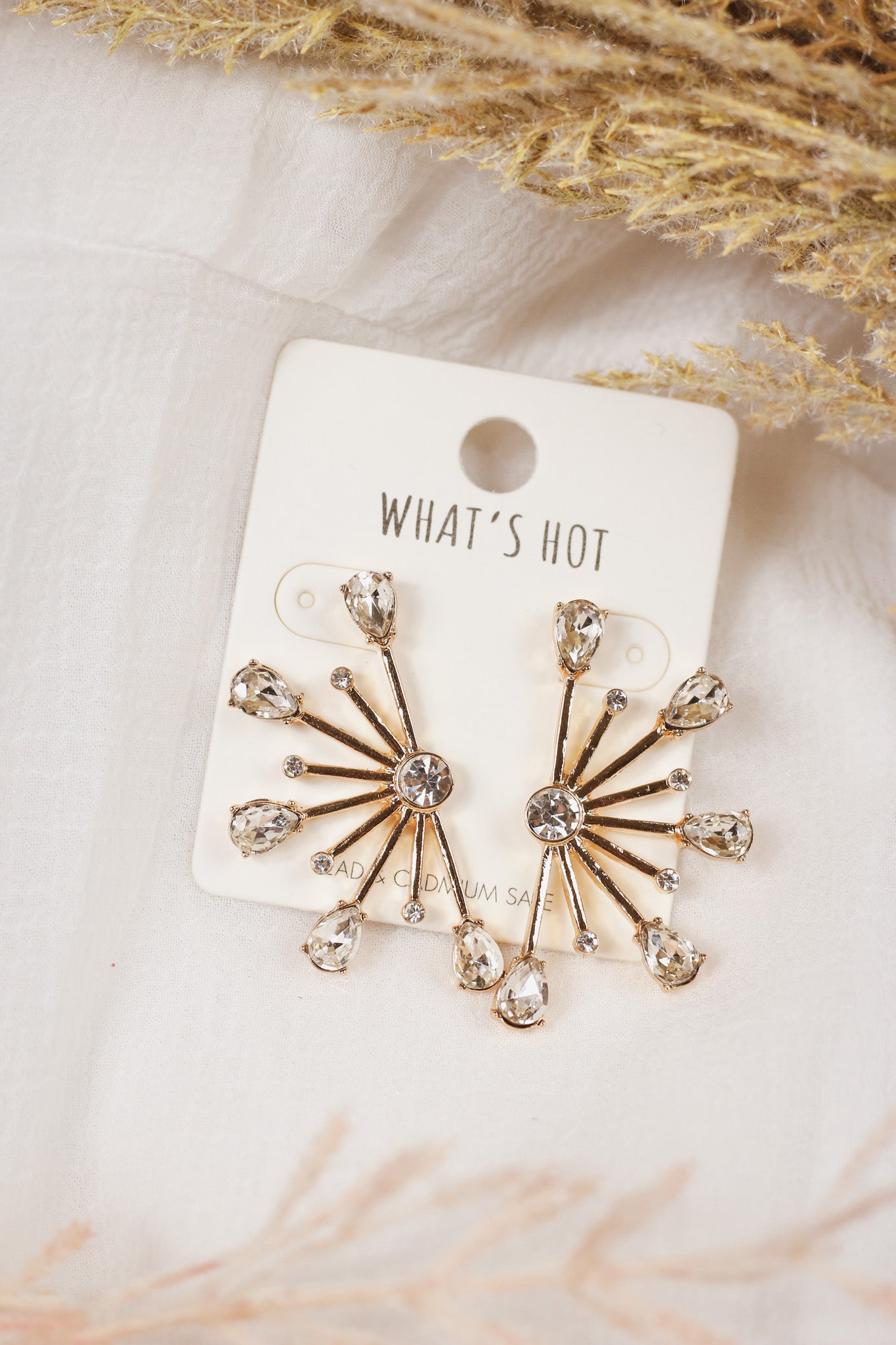 Be bold and daring with this Gold and Clear Crystal Spiked Stud 1.5" Earring. It's the perfect way to show off your fashionable edge with its sharp statement style. And you'll dazzle in the light with all the shimmer and shine of multiple crystals. Don't be shy; make jaws drop with this bold accessory!