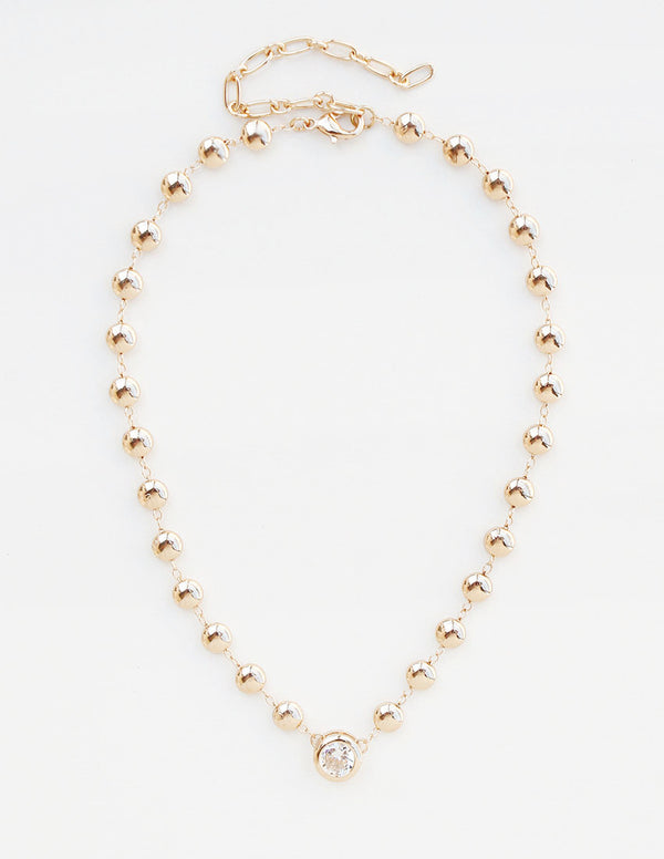 Gold Beaded Chain Clear Crystal Necklace
