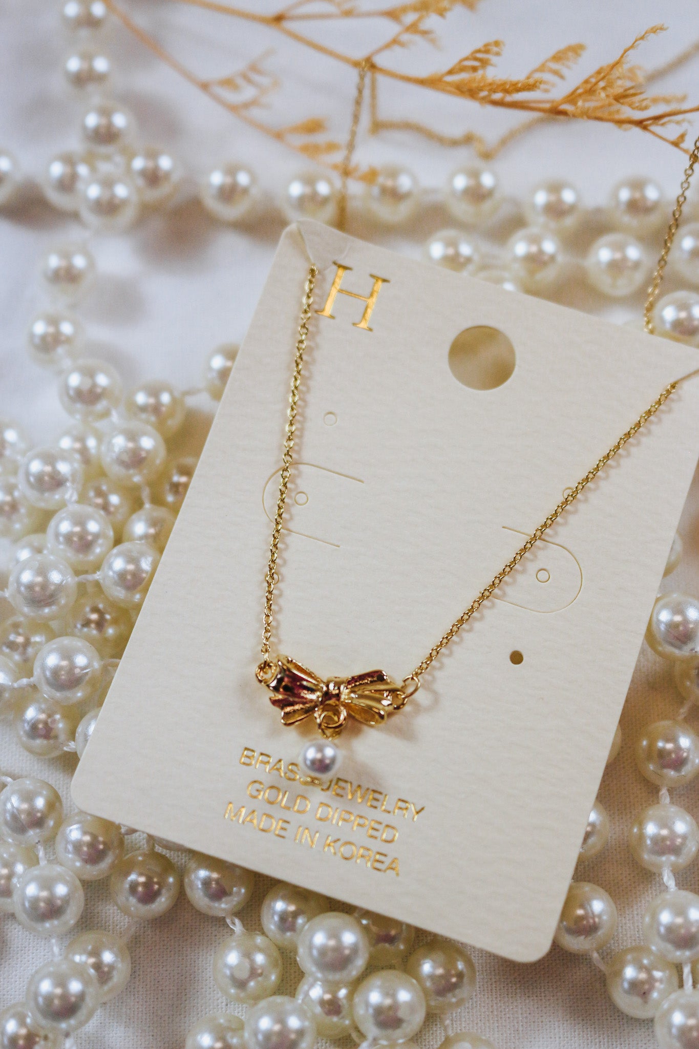 Add a touch of elegance to any outfit with our Gold Bow Pearl Necklace. The delicate bow design, crafted in luxurious gold, perfectly complements the shimmering pearl for a stylish and timeless look. A must-have accessory for any fashion-forward individual!
