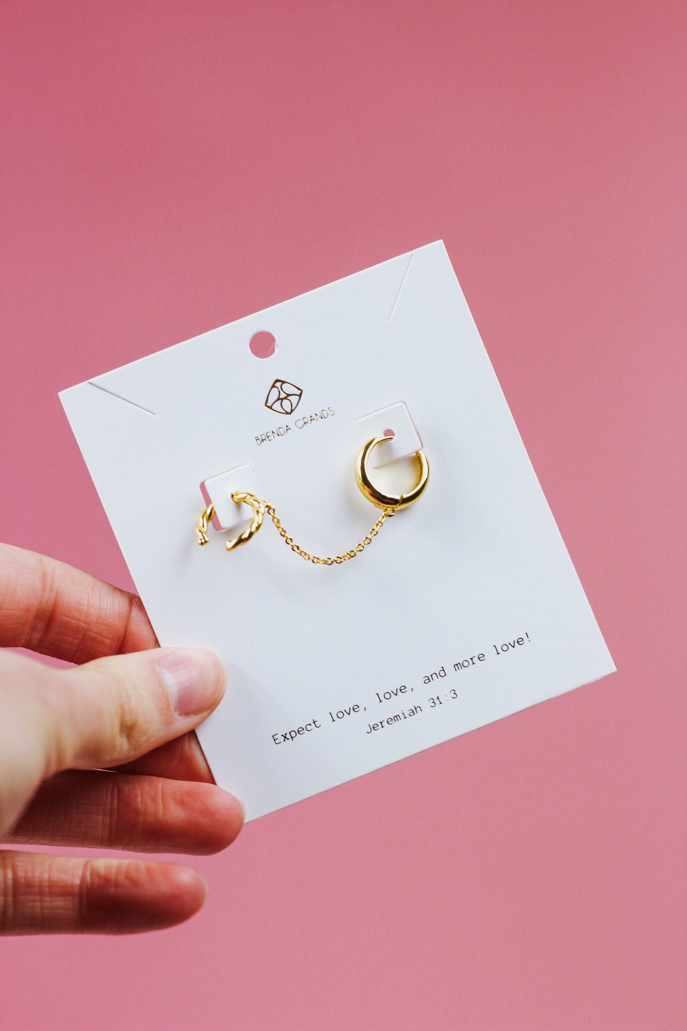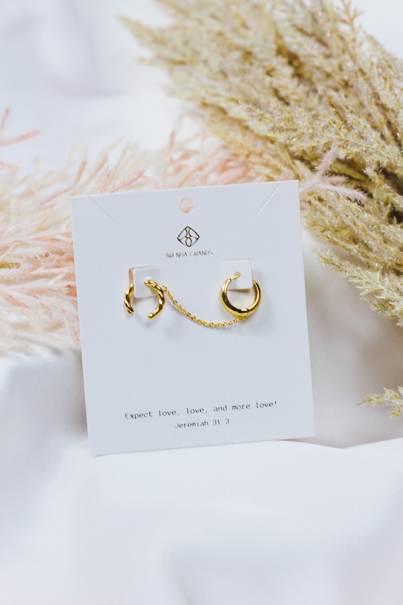 *SINGLE Earring: 1 huggie and 1 ear cuff connected with a chain*