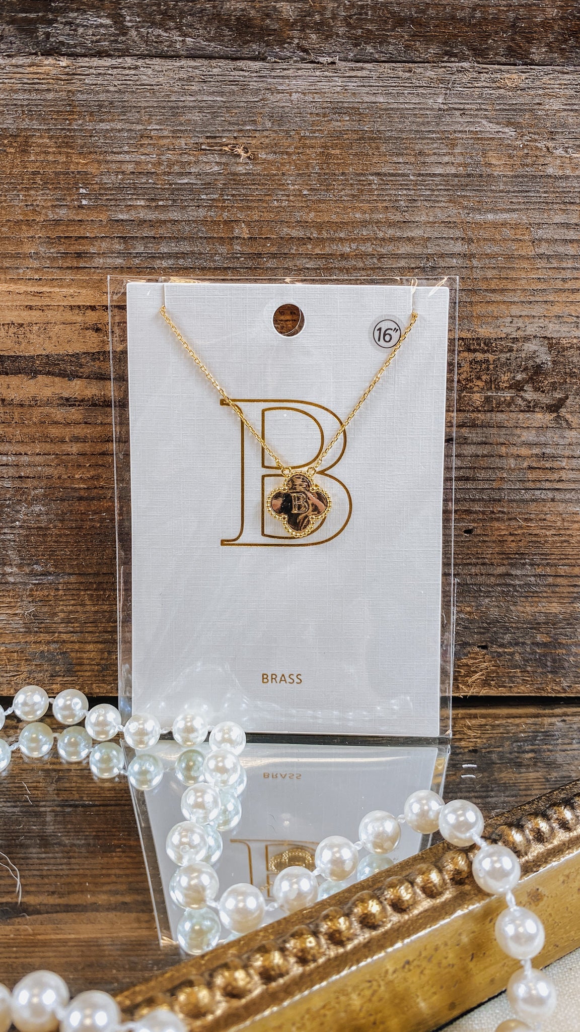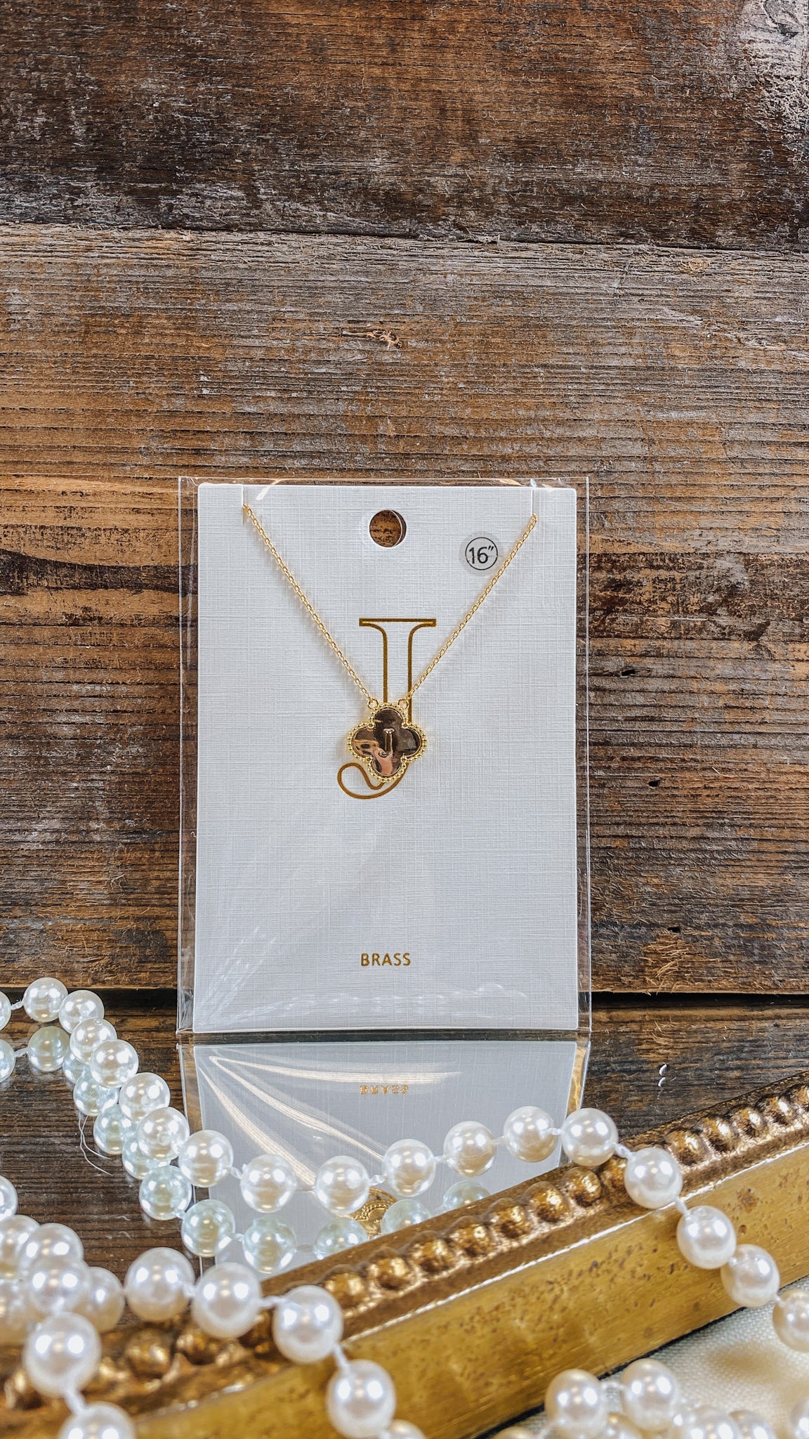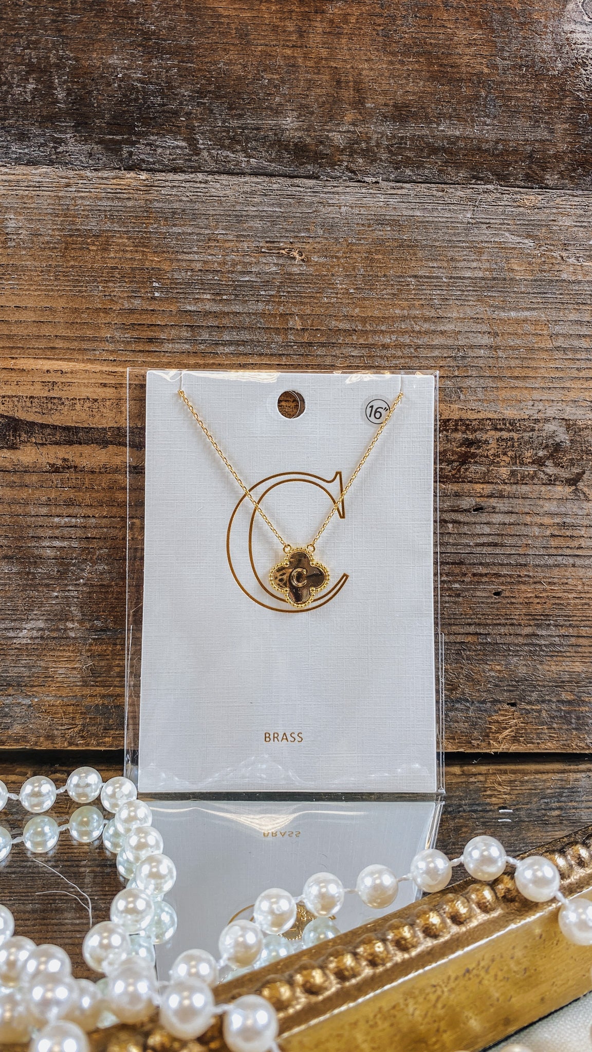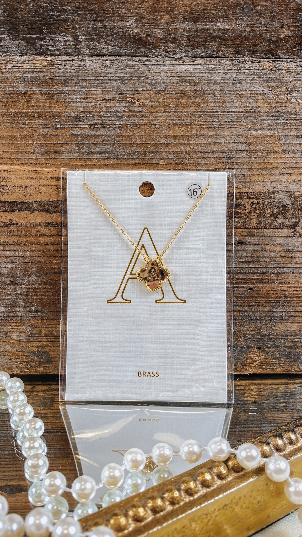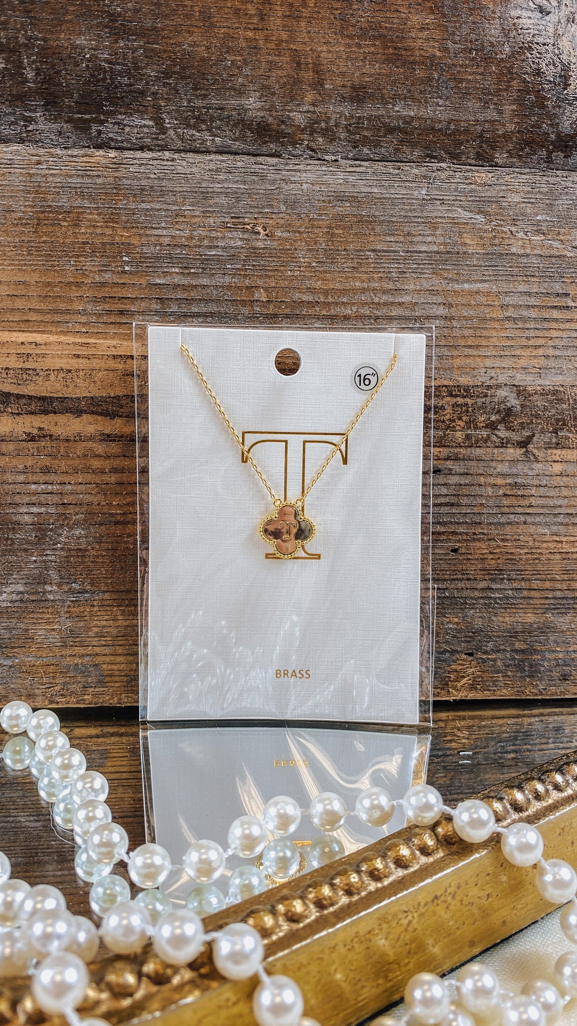 Gold Textured Clover Reversible Initial 16"-18" Necklace -10 Letters
