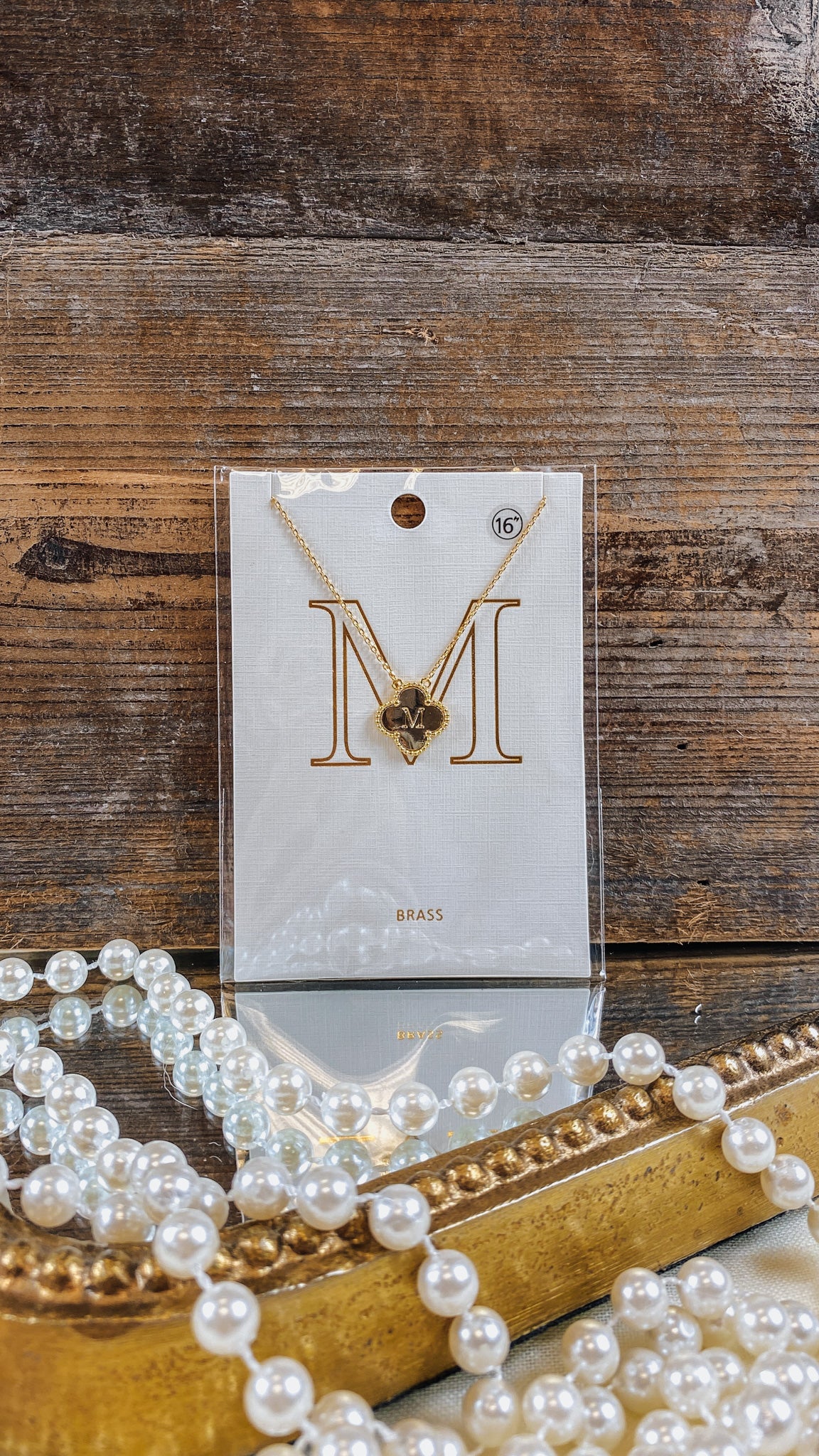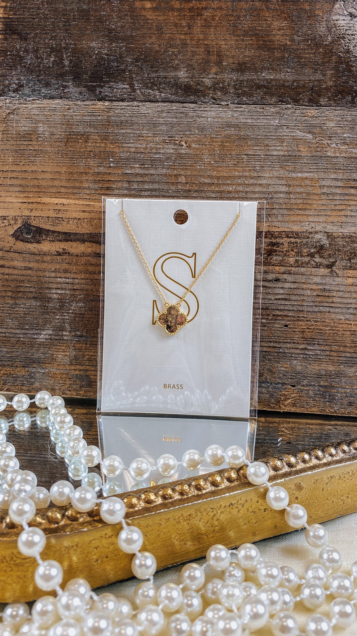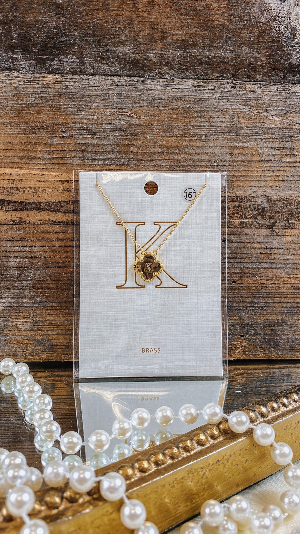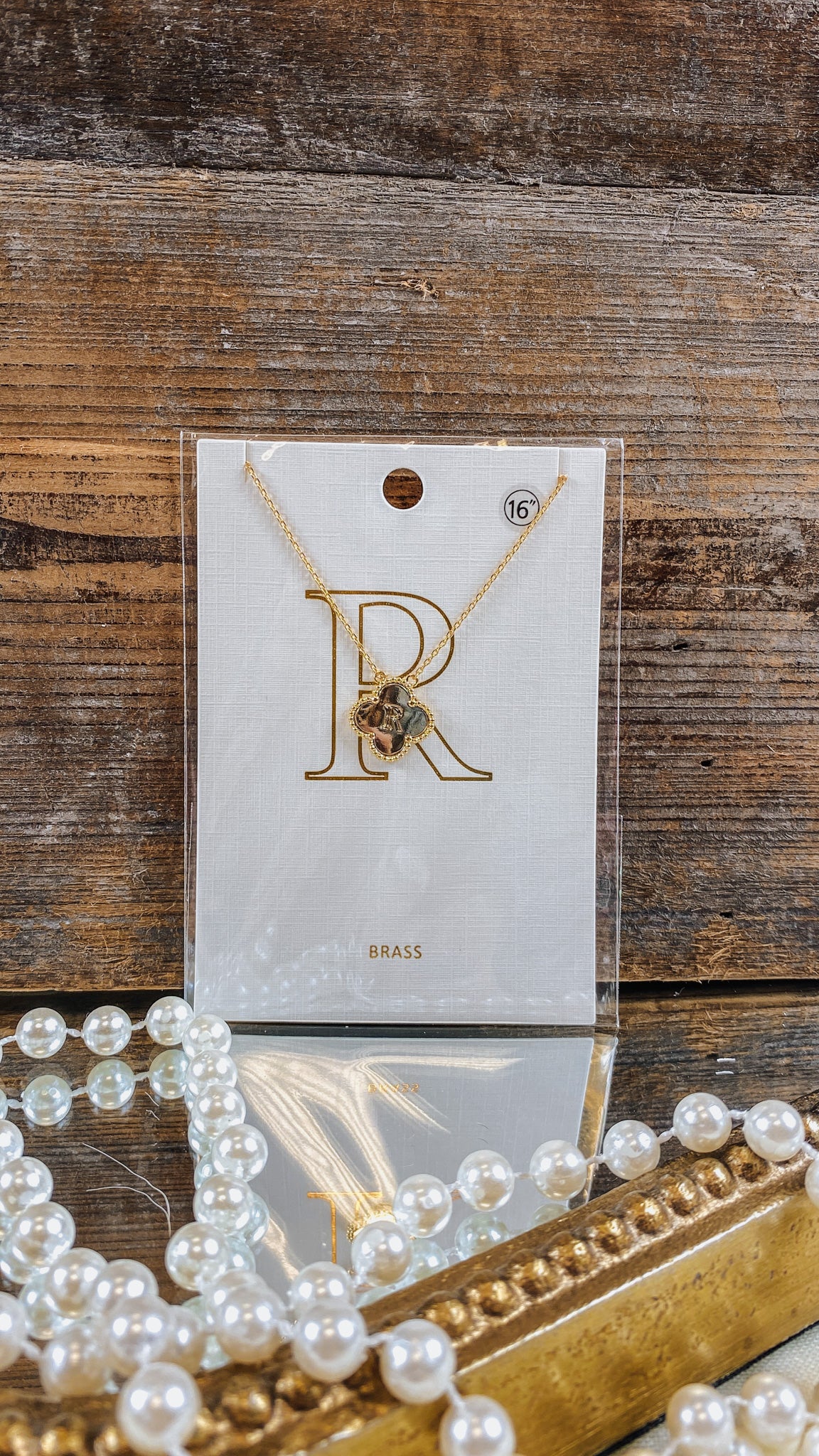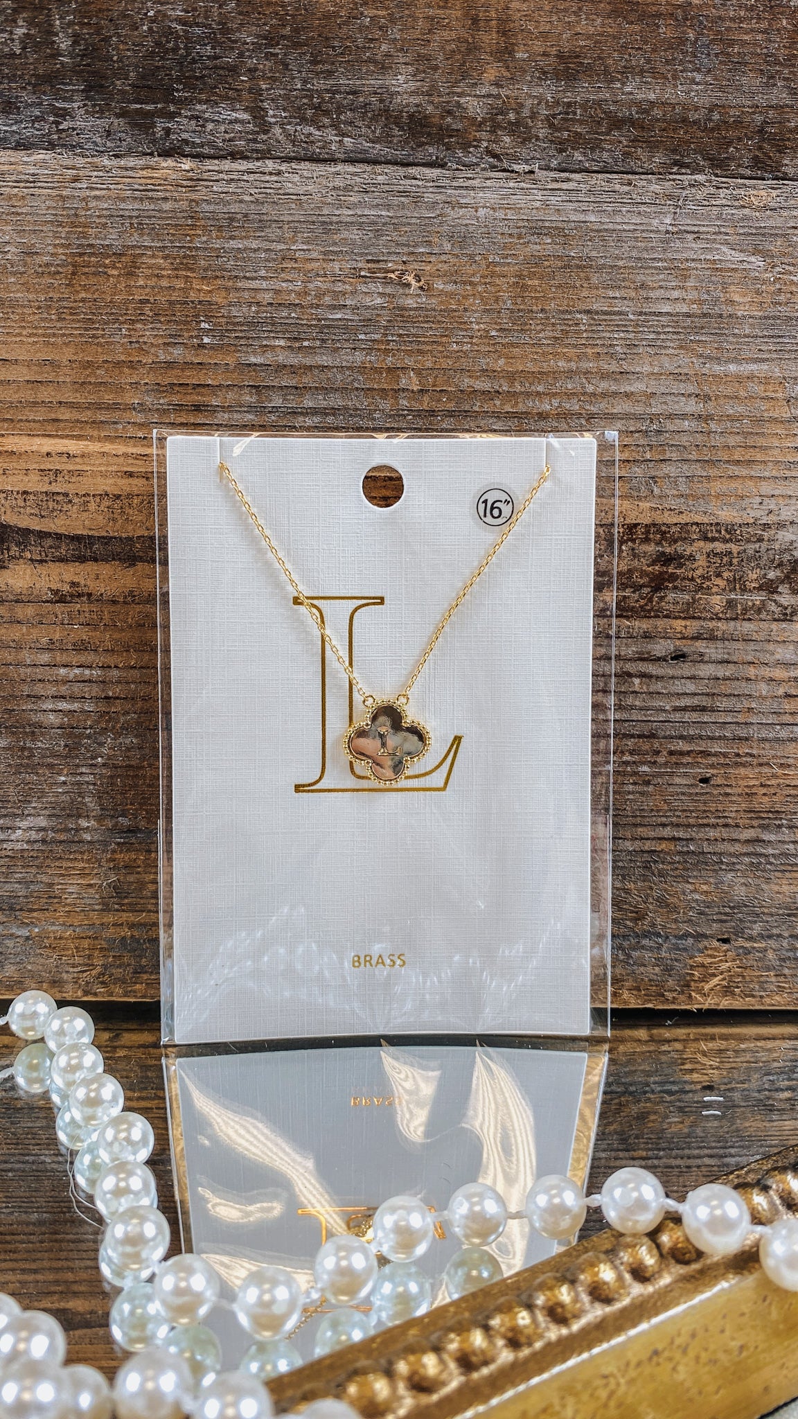 Gold Textured Clover Reversible Initial 16"-18" Necklace -10 Letters