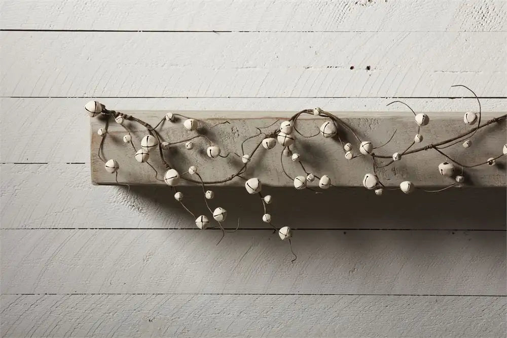 Yule be delighted to hang our festive jingle bell vine garland. The vine garland features jingle bells throughout. The jingle bells features a snowy white coloring and various sizes. The garland contrasts the white jingle bells with a dark brown coloring. This looks great on a fireplace mantel.