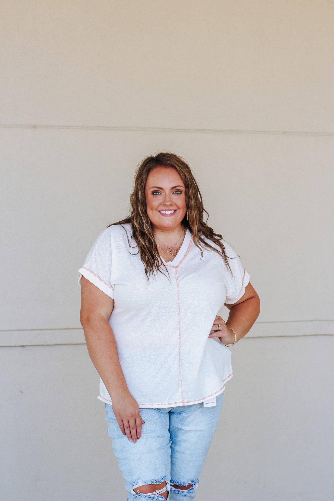 You're never off duty when it comes to looking fabulous in this Keeping It Comfy Off White Top. With sleek colored stitching that goes oh-so-well together, you'll be the epitome of elegance everywhere you go! Feeling comfy doesn't mean you can't still turn heads.