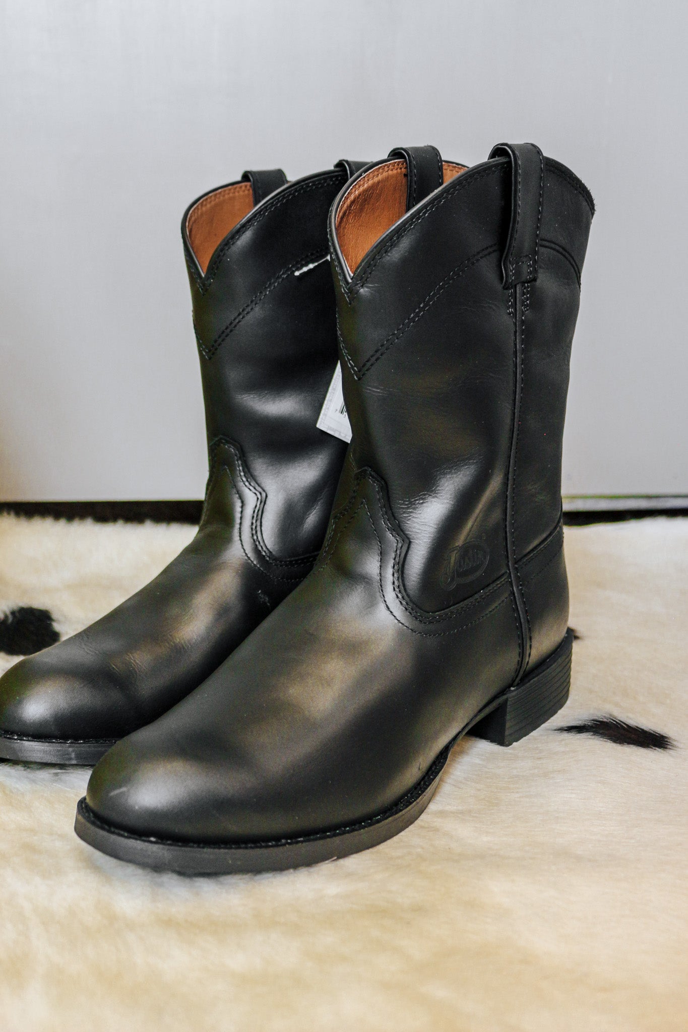 Experience the ultimate comfort and style with the SE7500 Men's Kilgore Jet Black Roper by Justin. Crafted with genuine cowhide, a slip resistant rubber sole, and a J-Flex removable orthotic, these roper boots offer unparalleled support and durability. The 11 inch height and B heel, along with the soft woven lining and single stitched welt, make them perfect for everyday wear or as part of a uniform. Trust in Justin's quality and get ready to conquer whatever the day brings!