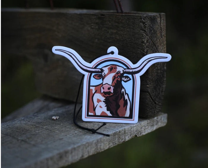 Say goodbye to stale car air with the Long Horn Air Freshie- New Linen! Perfect for getting a lil' freshness in your vehicle, this car freshie features subtle notes of new linen that will make your car smell like a spring day. With the power to fill your ride with scent, it's like a breath of fresh air! 🐂