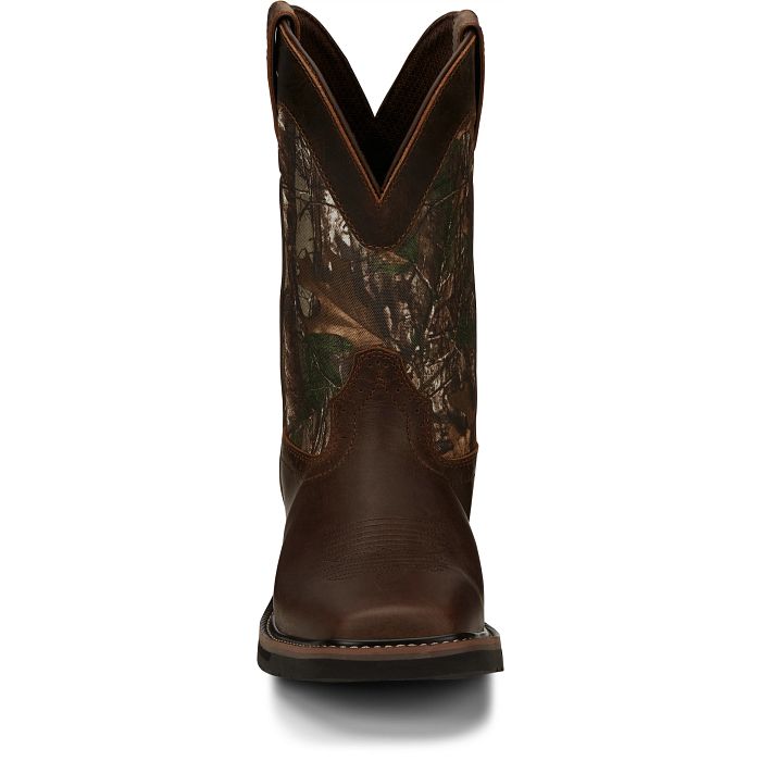 The RealTree®Mini X-tra camo upper is paired with a polished brown leather square toe foot and collar and features a waterproof exterior for added protection when up against the outdoor elements. The J-Flex Flexible Comfort System® insole cushions and supports your foot on or off the trail.